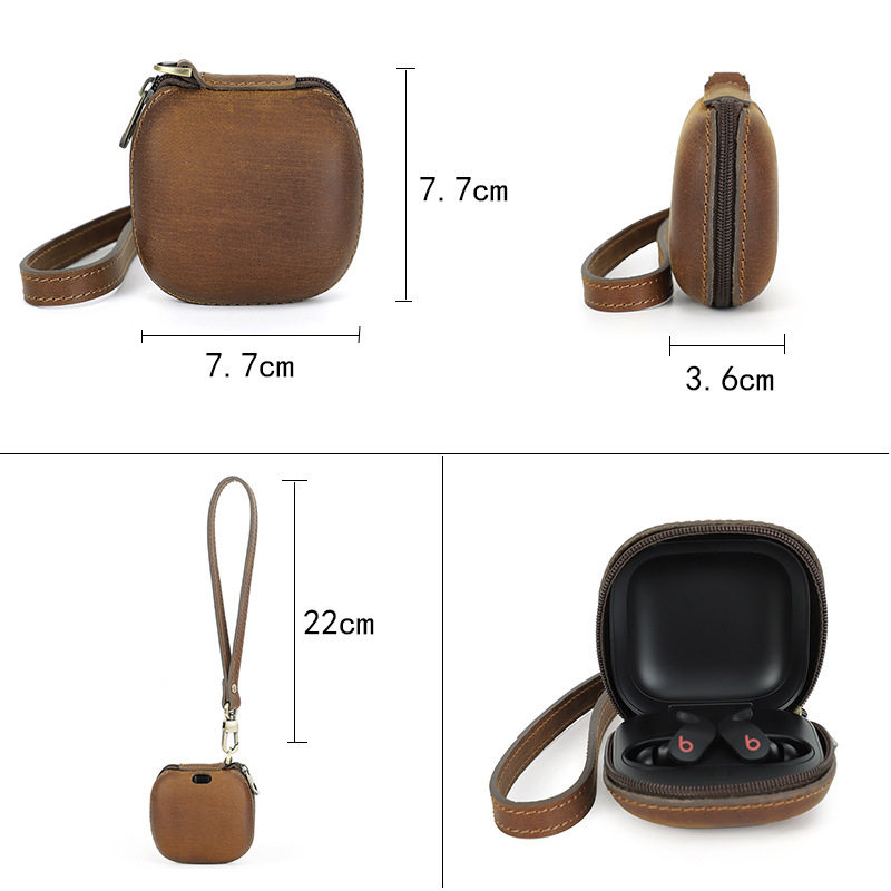 适用Beats fitpro耳机套牛皮拉链手腕便携魔音蓝牙耳机保护套现货