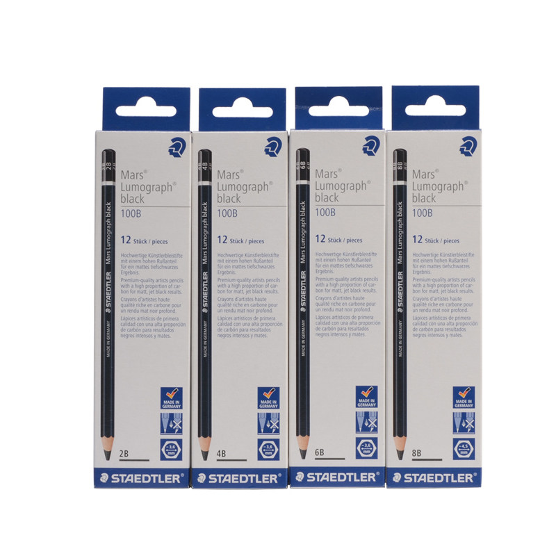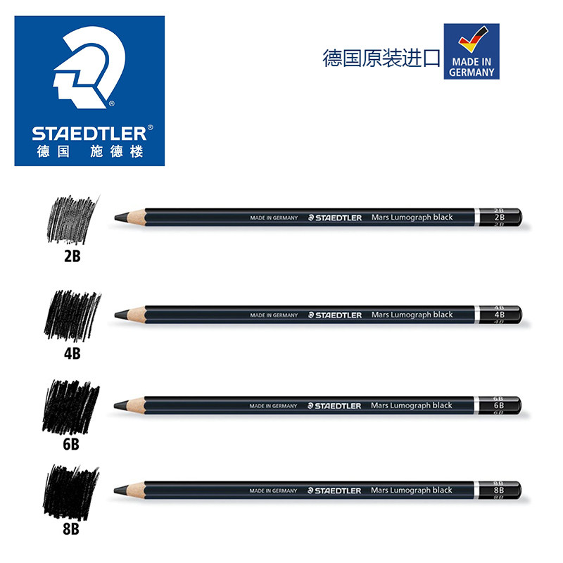 德国进口STAEDTLER施德楼炭铅笔黑杆浓黑素描亚光铅笔灰杆软炭笔