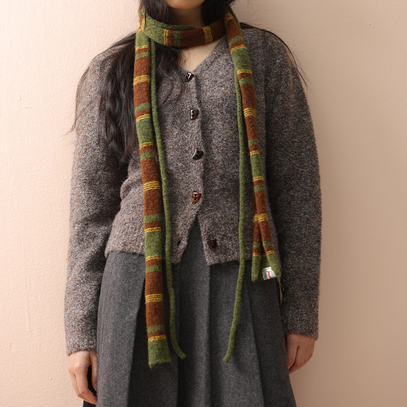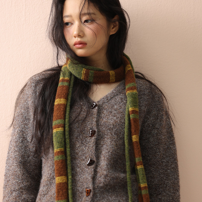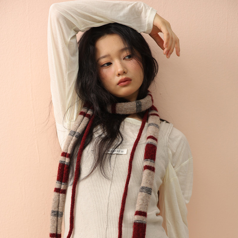 条纹细围巾女秋冬拼色长条针织辣妹装饰高级感时髦外搭飘带围脖潮