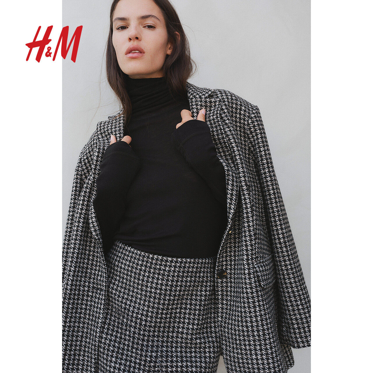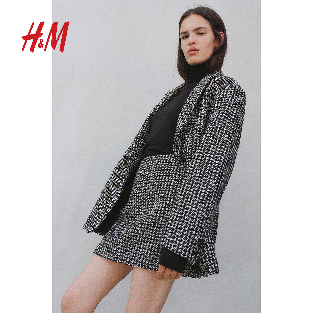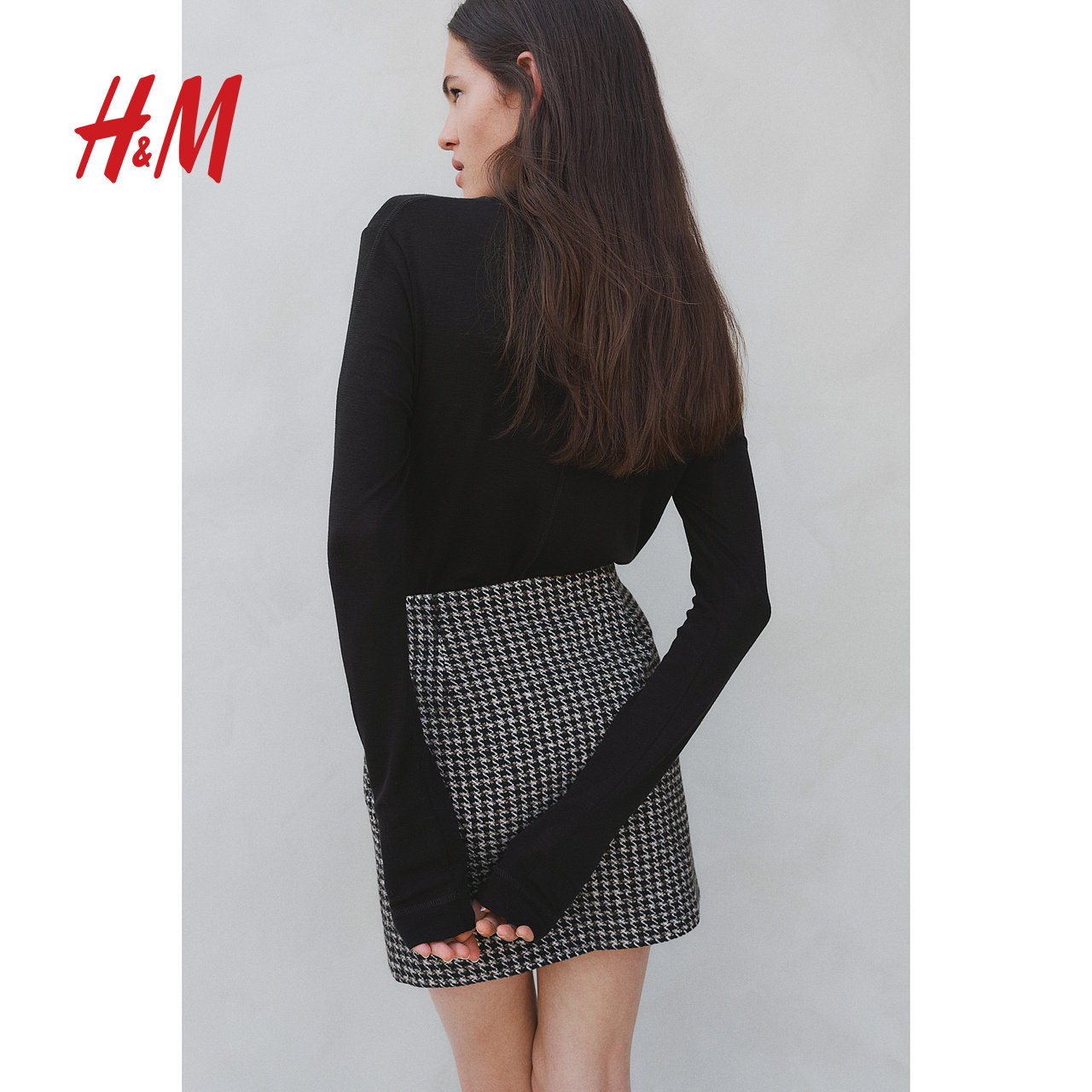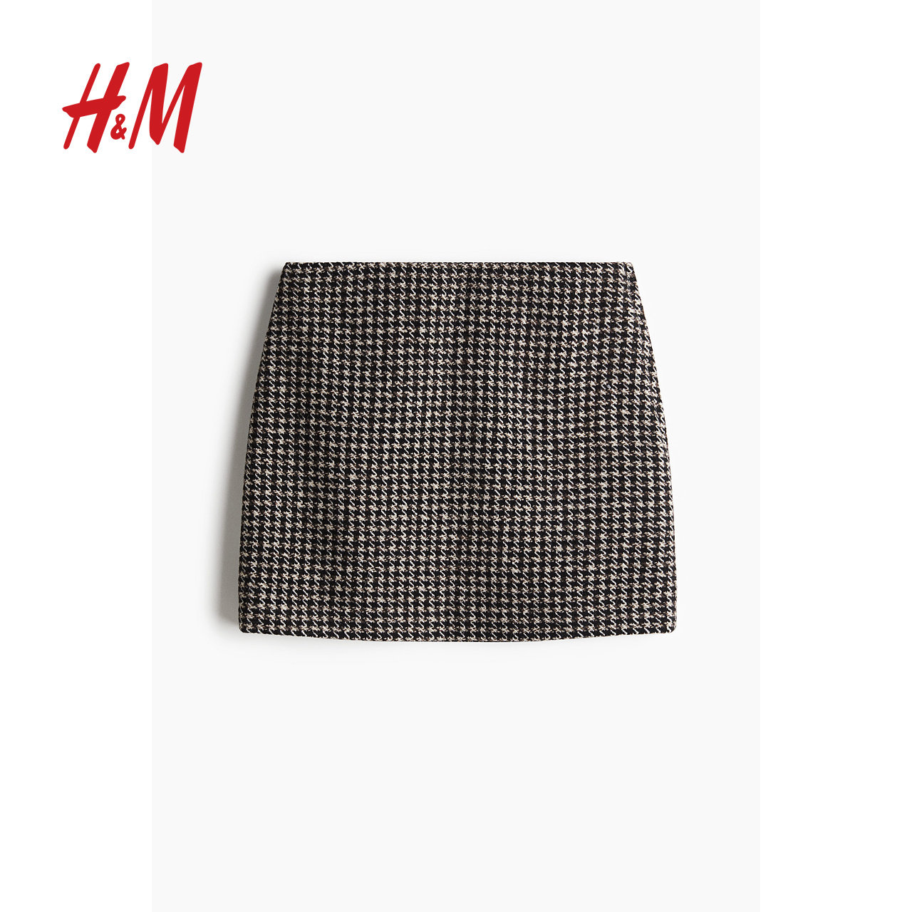 HM女装半身裙冬季时尚高腰A字修身迷你格纹短裙1245508