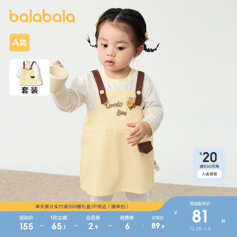 巴拉巴拉宝宝秋装女童长袖套装儿童衣服背带裙两件套可爱活力洋气