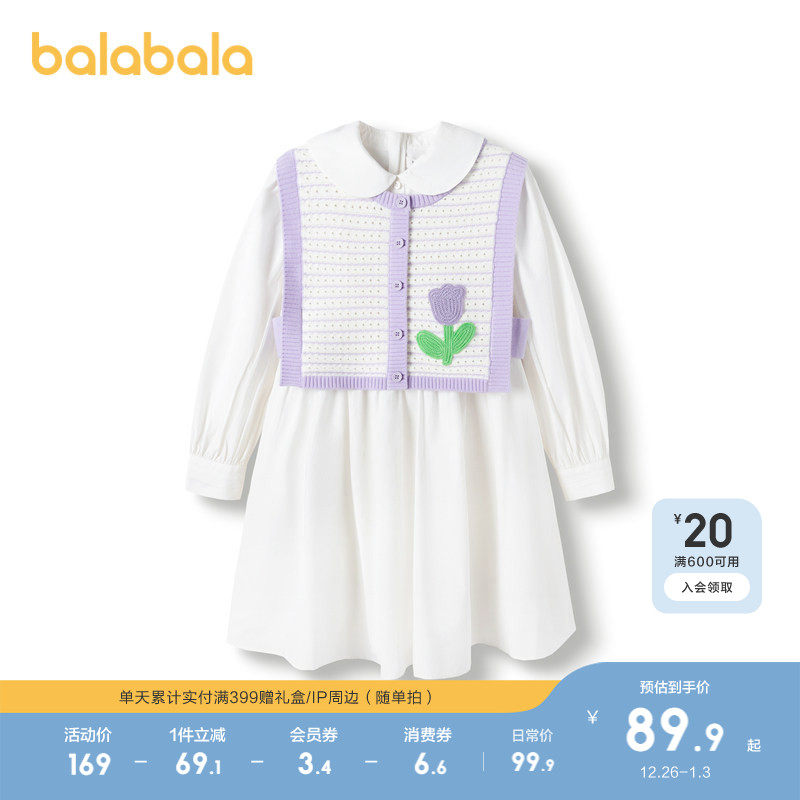 巴拉巴拉童装儿童连衣裙针织拼接女童春秋装学院娃娃领裙子套装潮