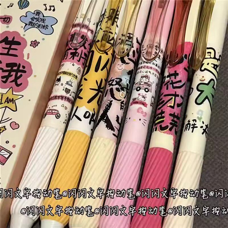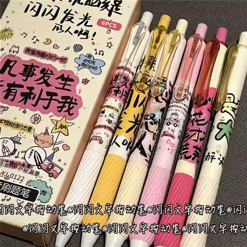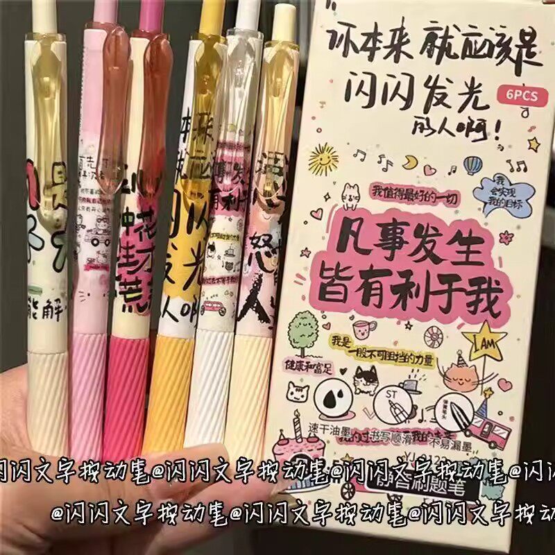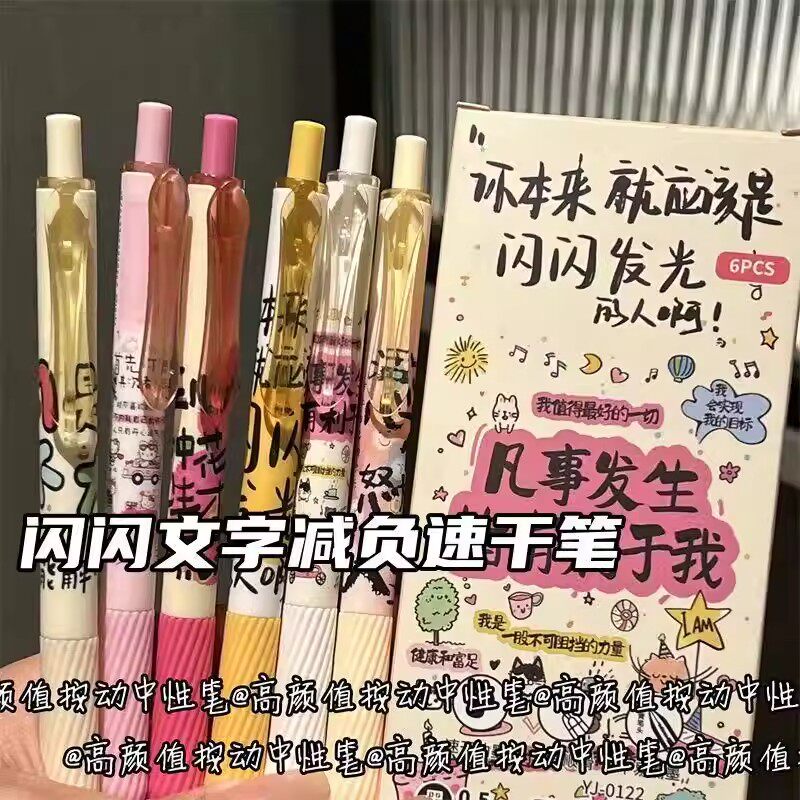 闪闪文字按动静音中性笔可爱ins高颜值学生少女心速干刷题0.5黑笔