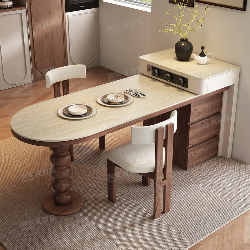 法式餐厅新型岛台餐桌厨房一体可伸缩家用小型操作小尺寸省空吧台