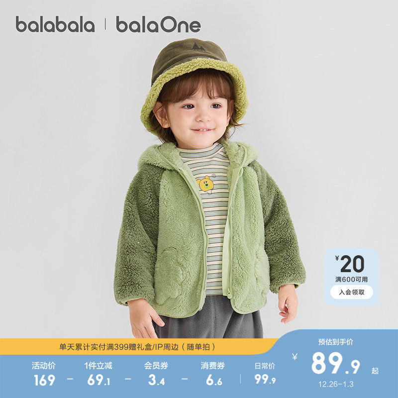 巴拉巴拉童装儿童外套宝宝上衣男童女童新款2025秋冬珊瑚绒保暖潮