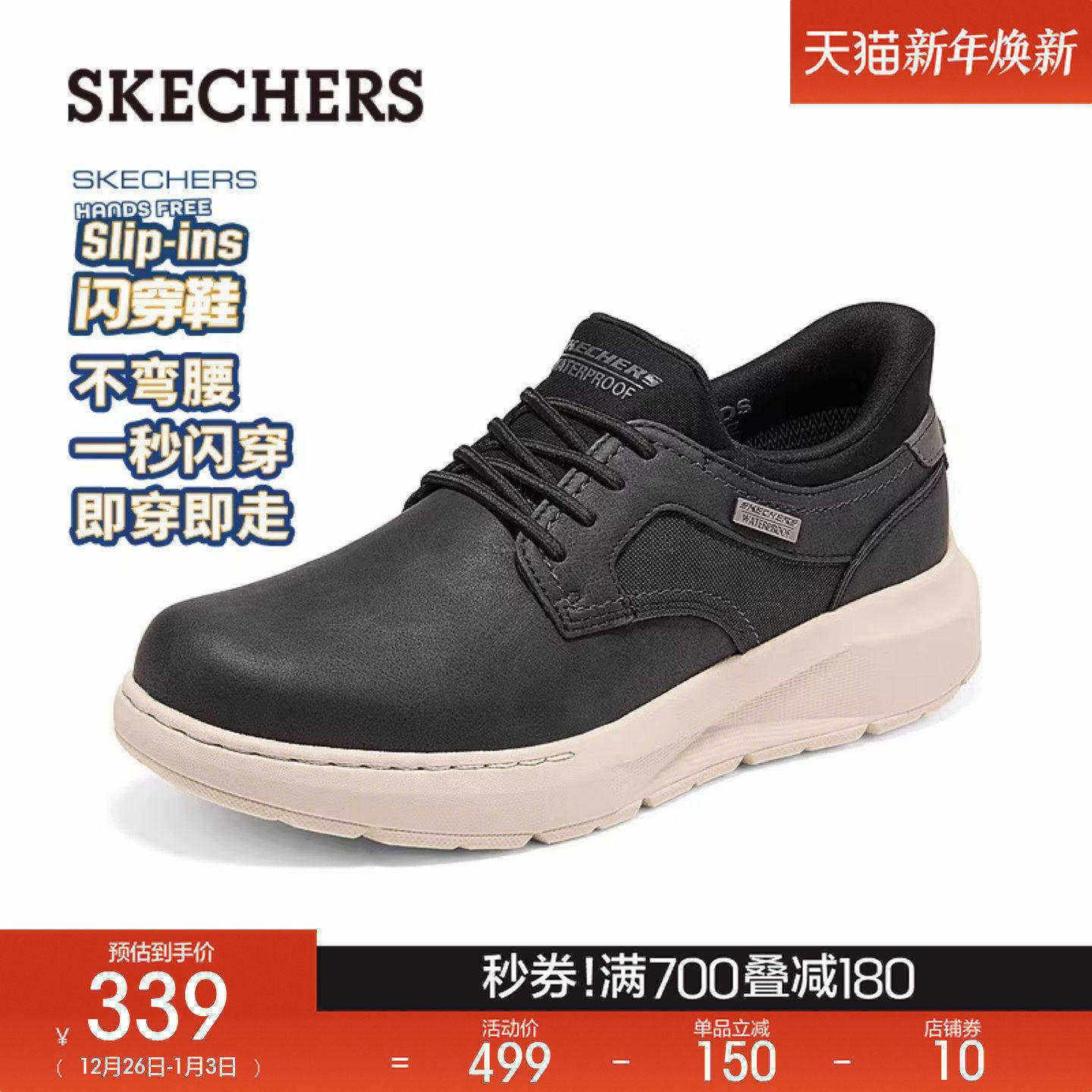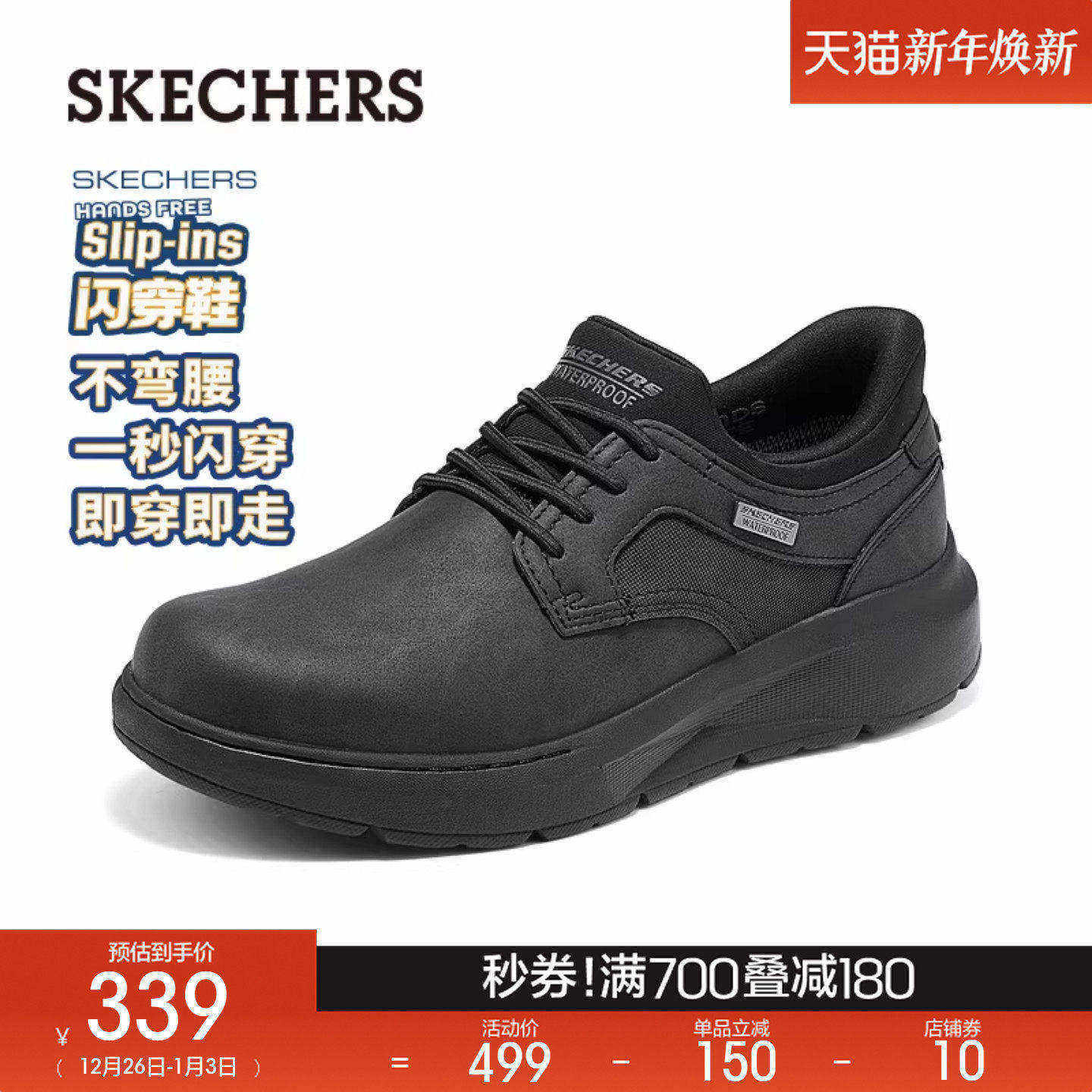 斯凯奇2025秋冬新款男子舒适休闲皮鞋时尚百搭商务鞋通勤鞋德比鞋