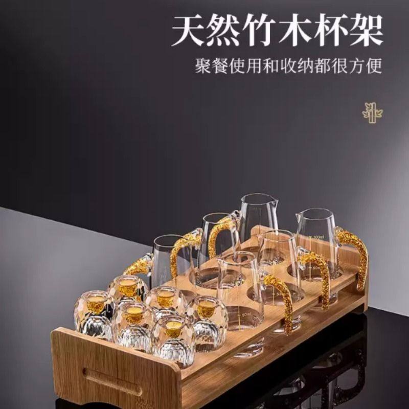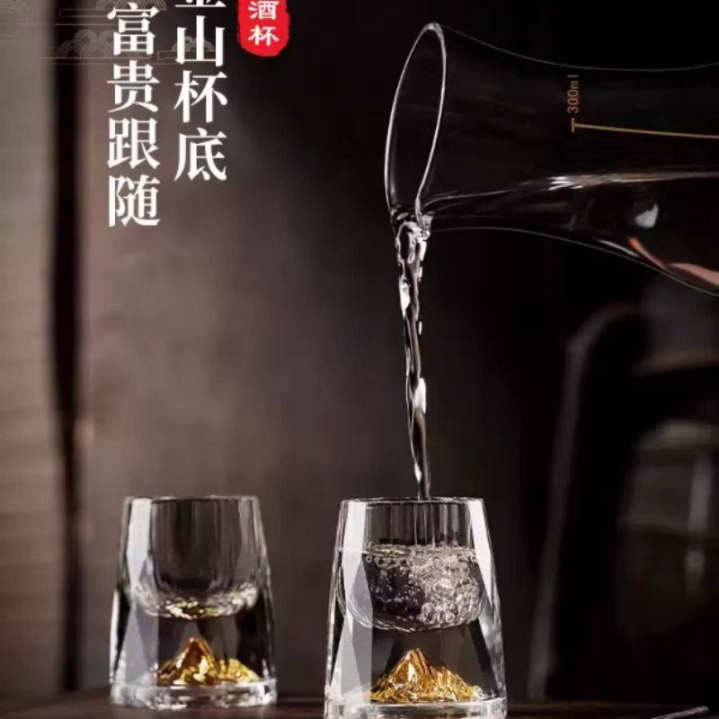 钻石金山白酒杯套装家用水晶玻璃小一口杯中式分酒器酒盅酒具礼盒