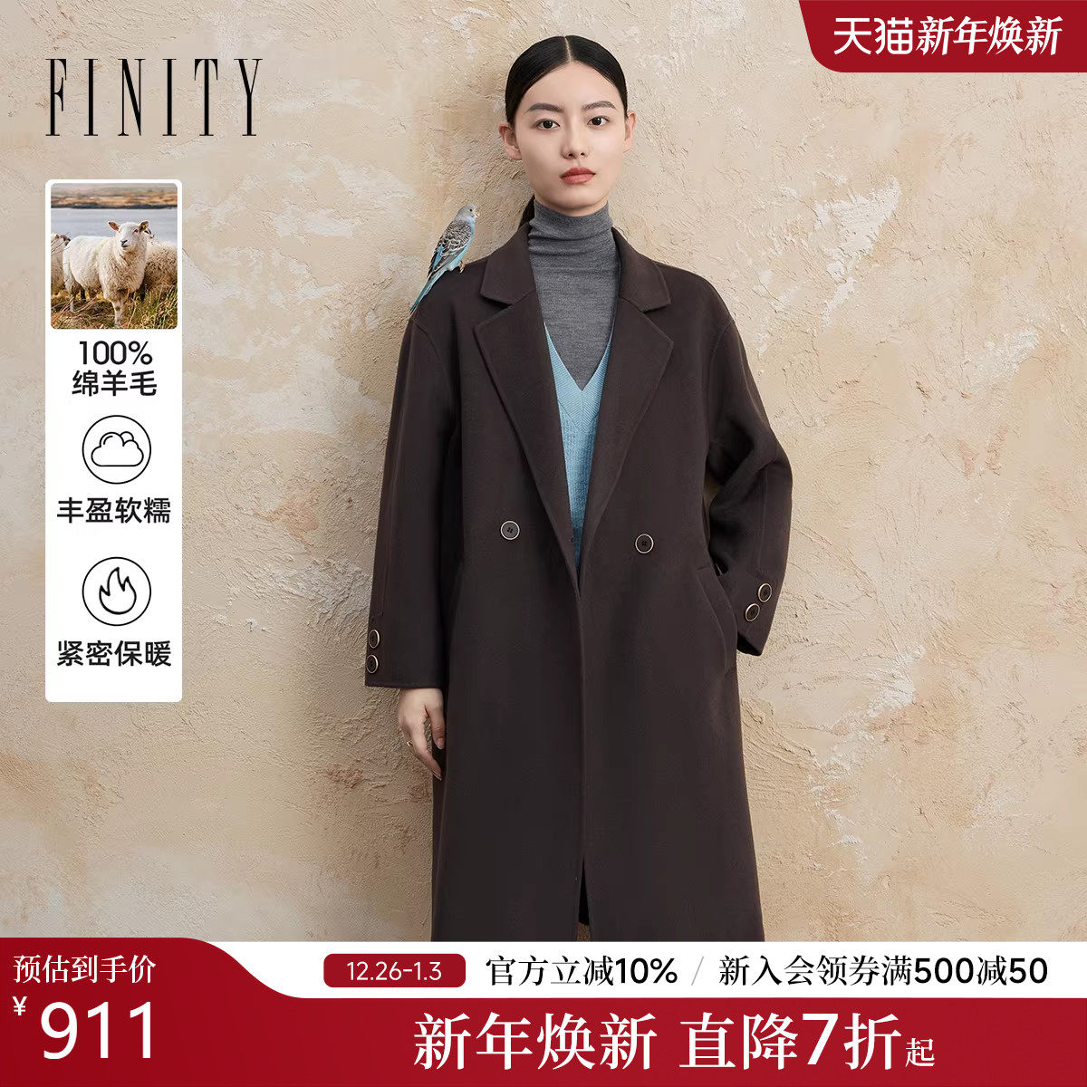 菲妮迪品牌双面呢大衣2025冬季新款简约纯羊毛通勤保暖毛呢外套女