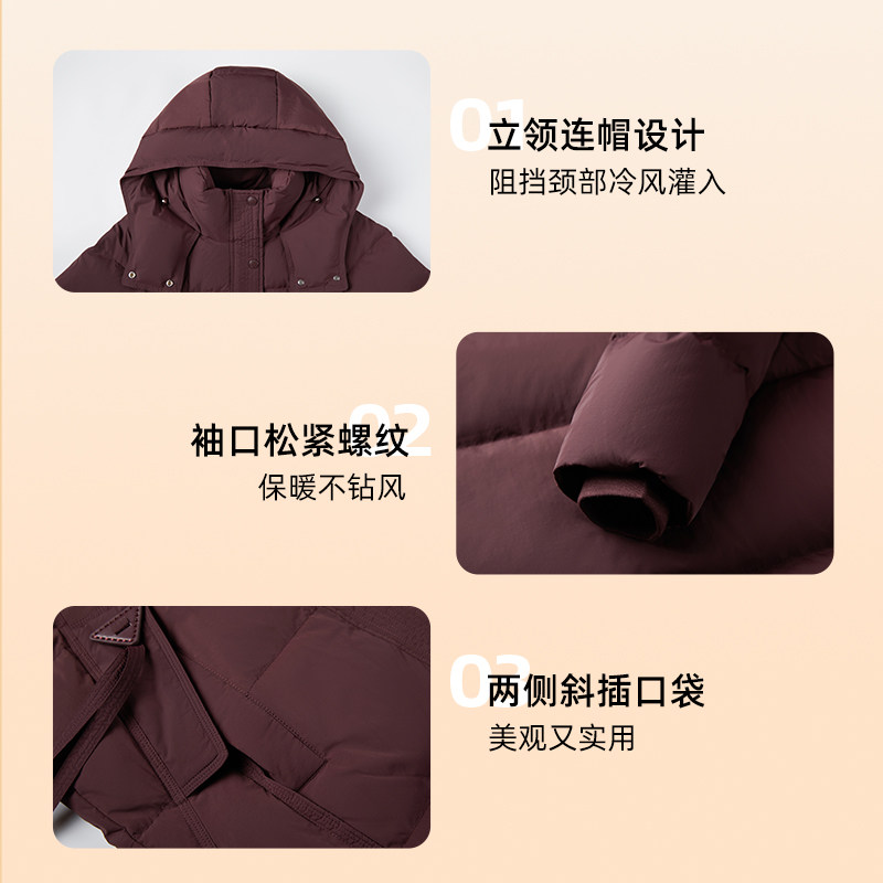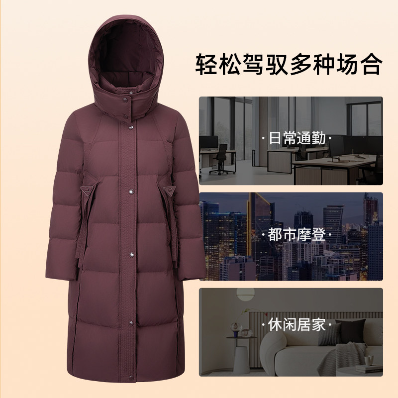 千仞岗2025秋冬新款长款羽绒服连帽保暖气质复古简约女款通勤外套
