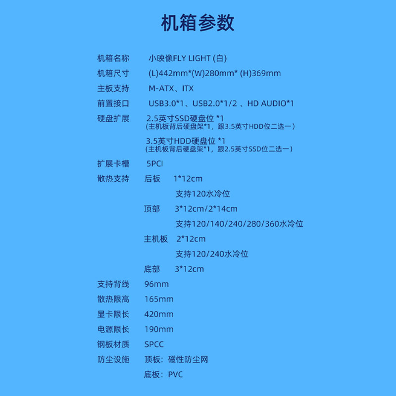【国家补贴10%】先马小映像FLY light电脑台式小机箱MATX散热防尘