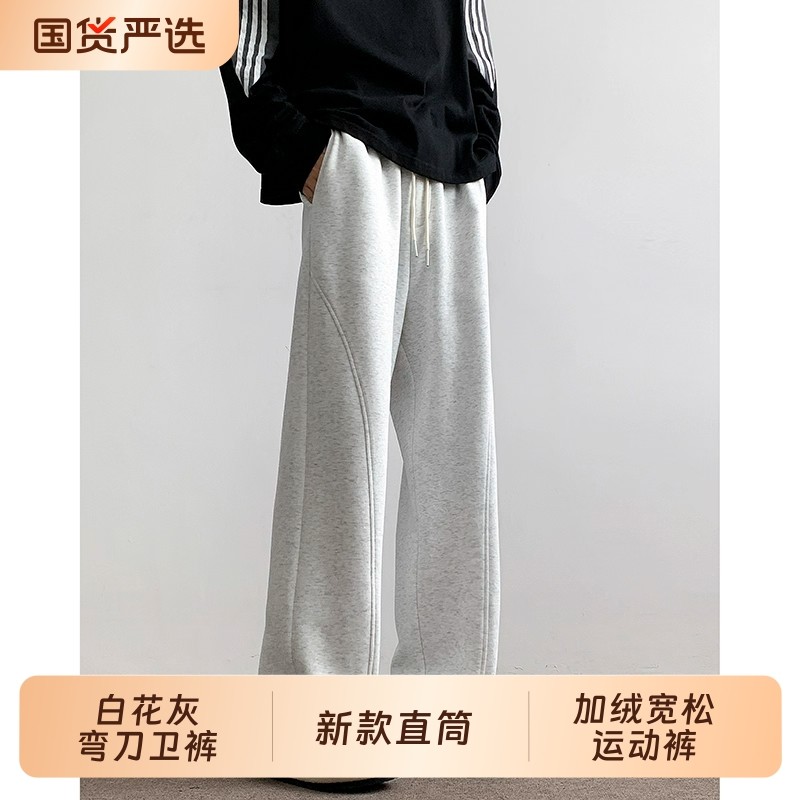 白花灰弯刀卫裤男士春秋2025新款直筒休闲裤子秋冬加绒宽松运动裤