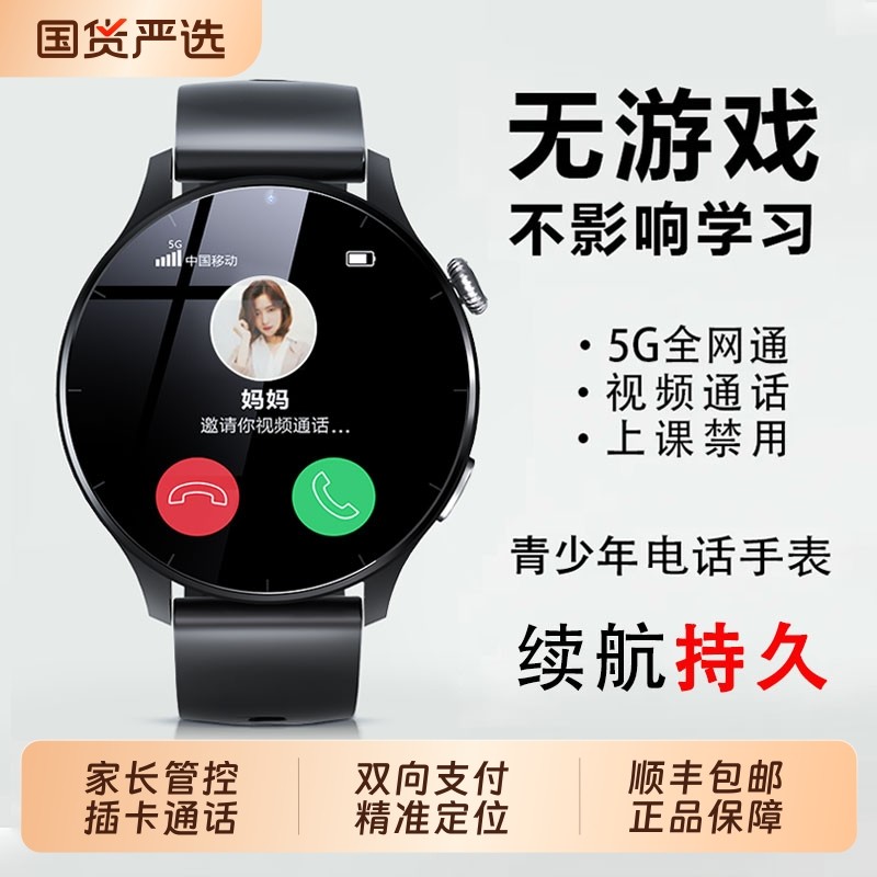 【家长推荐】青少年儿童电话手表全网通可插卡定位视频通话初中高中生通用无游戏长续航中学生智能手表