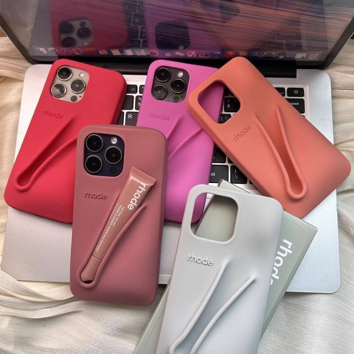 rhod海莉同款收纳唇彩唇釉适用苹果16手机壳17ProMax新款创意12硅胶15软壳14网红insHailey Lip Case彩防摔13