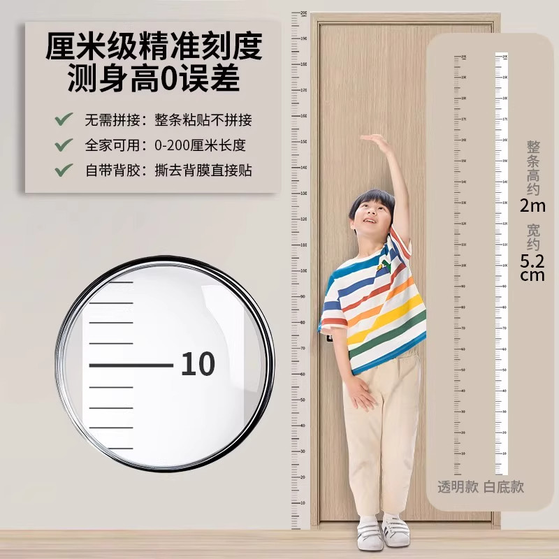 身高测量墙贴透明儿童量身高尺不伤墙可移除精准宝宝神器家用房间