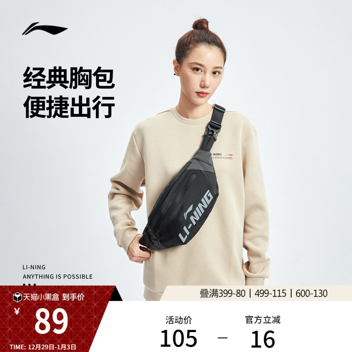 李宁腰包斜挎包男士女款轻便多功能胸包黑色时尚休闲运动单肩包包