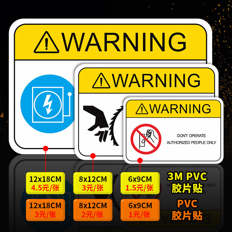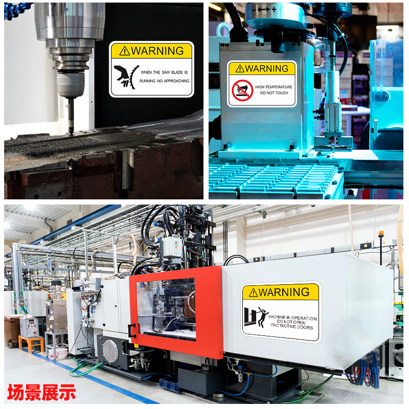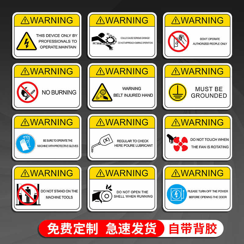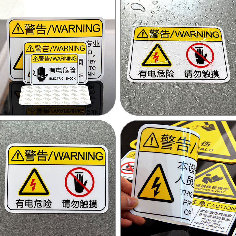 机器机械设备安全警示贴纯英文当心触电有电危险标识机床操作标签