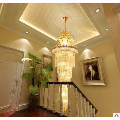 别墅楼梯水晶灯金色客厅灯具大气创意吊灯餐厅灯过道大堂酒店灯饰