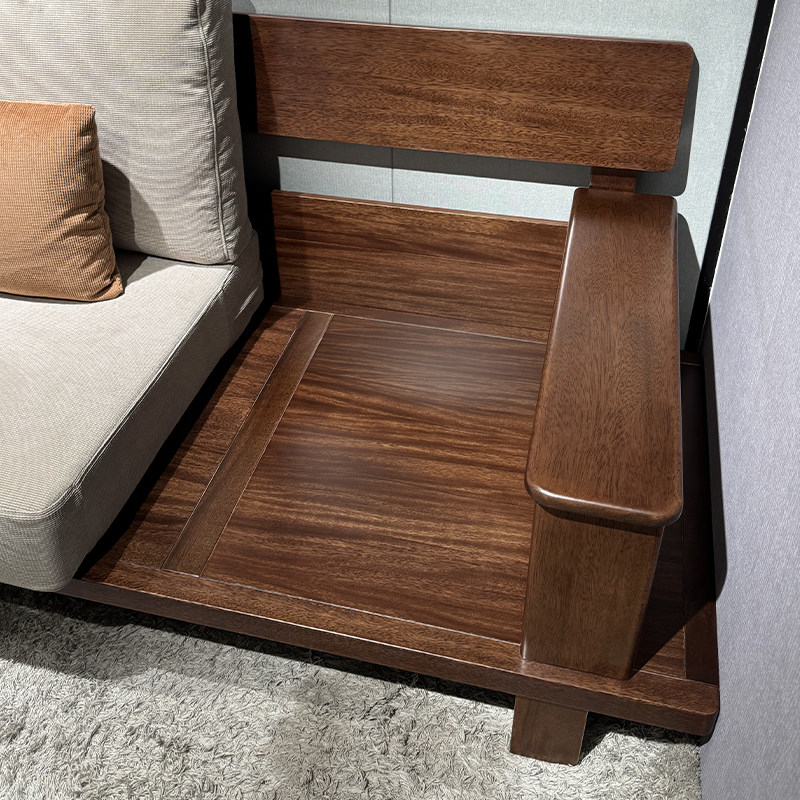 中式实木沙发简约客厅冬夏两用黑胡桃小户型出租屋窄木质复古沙发