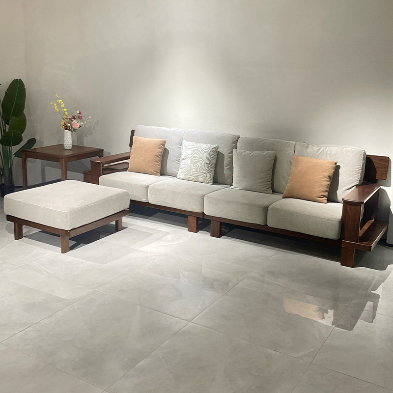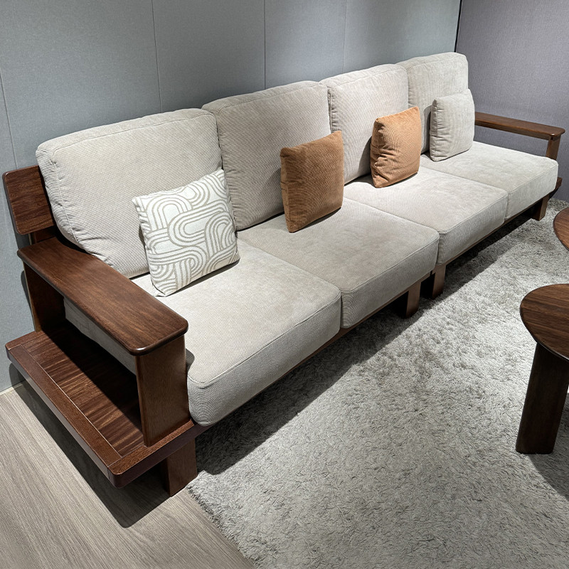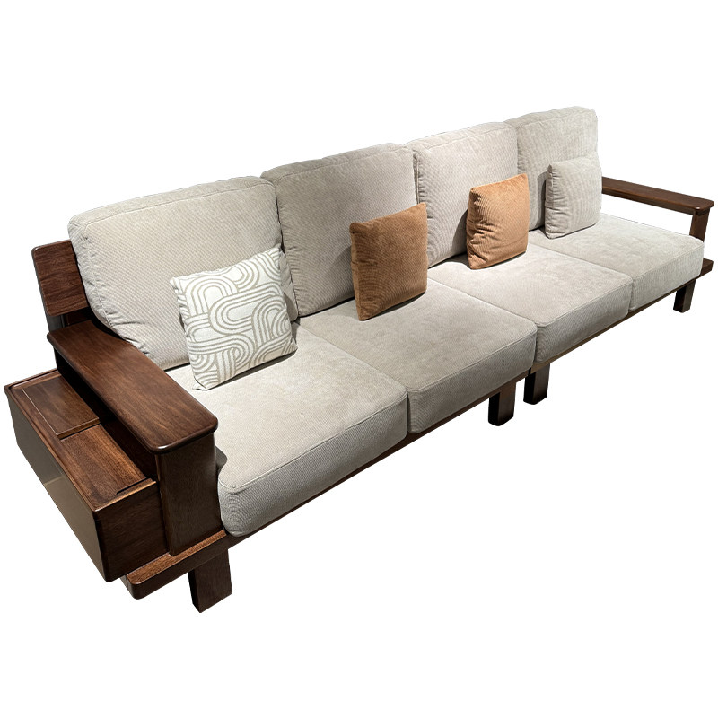 全实木沙发客厅家用简约现代小户型胡桃木储物直排四人位沙发布艺