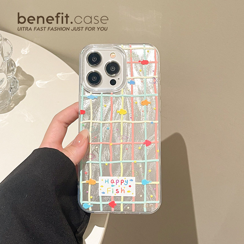 benefit趣味彩色线条小鱼17适用于iphone16promax苹果15PRO手机壳13新款14套12创意11羽纱xsmax硅胶xr防摔8p