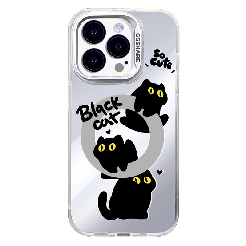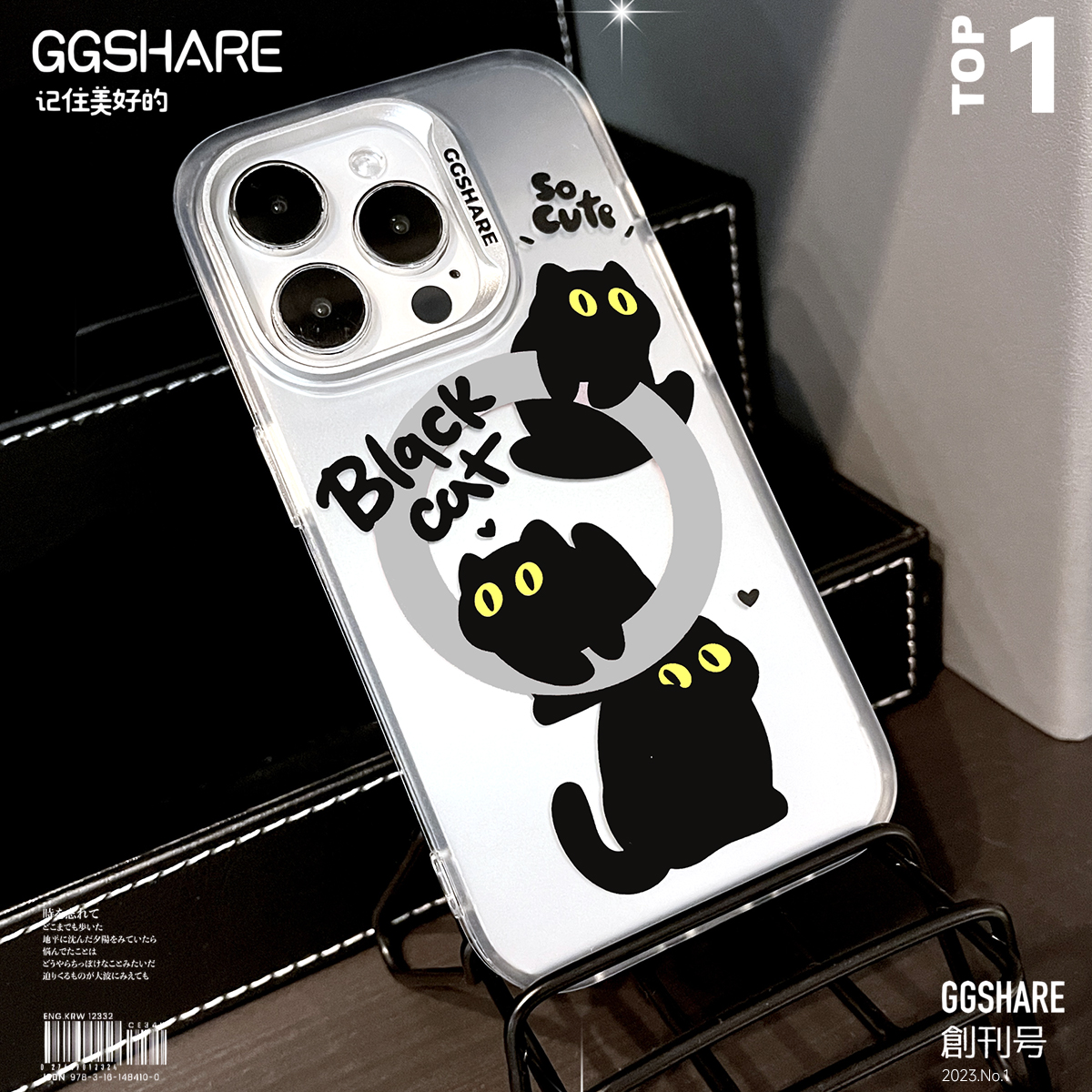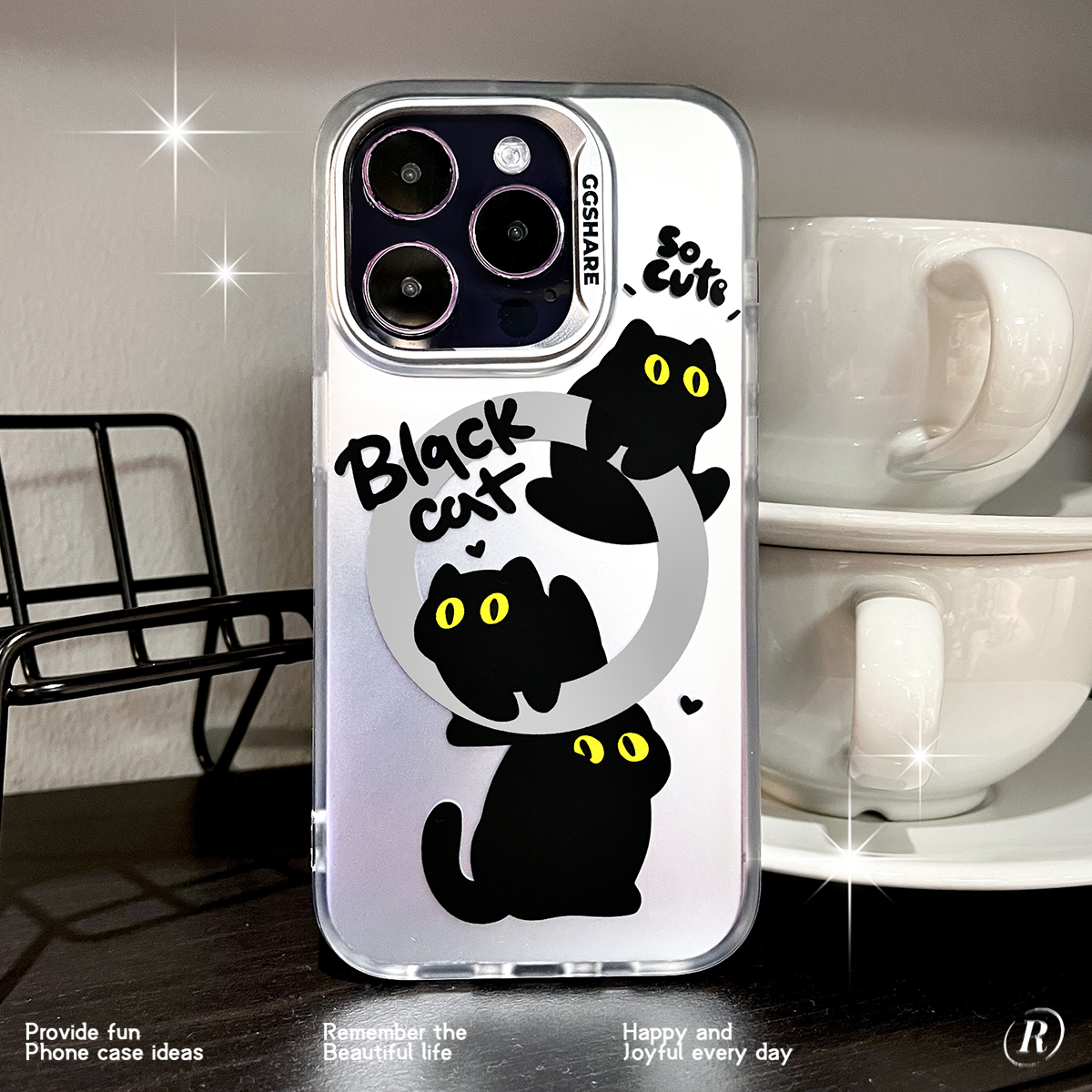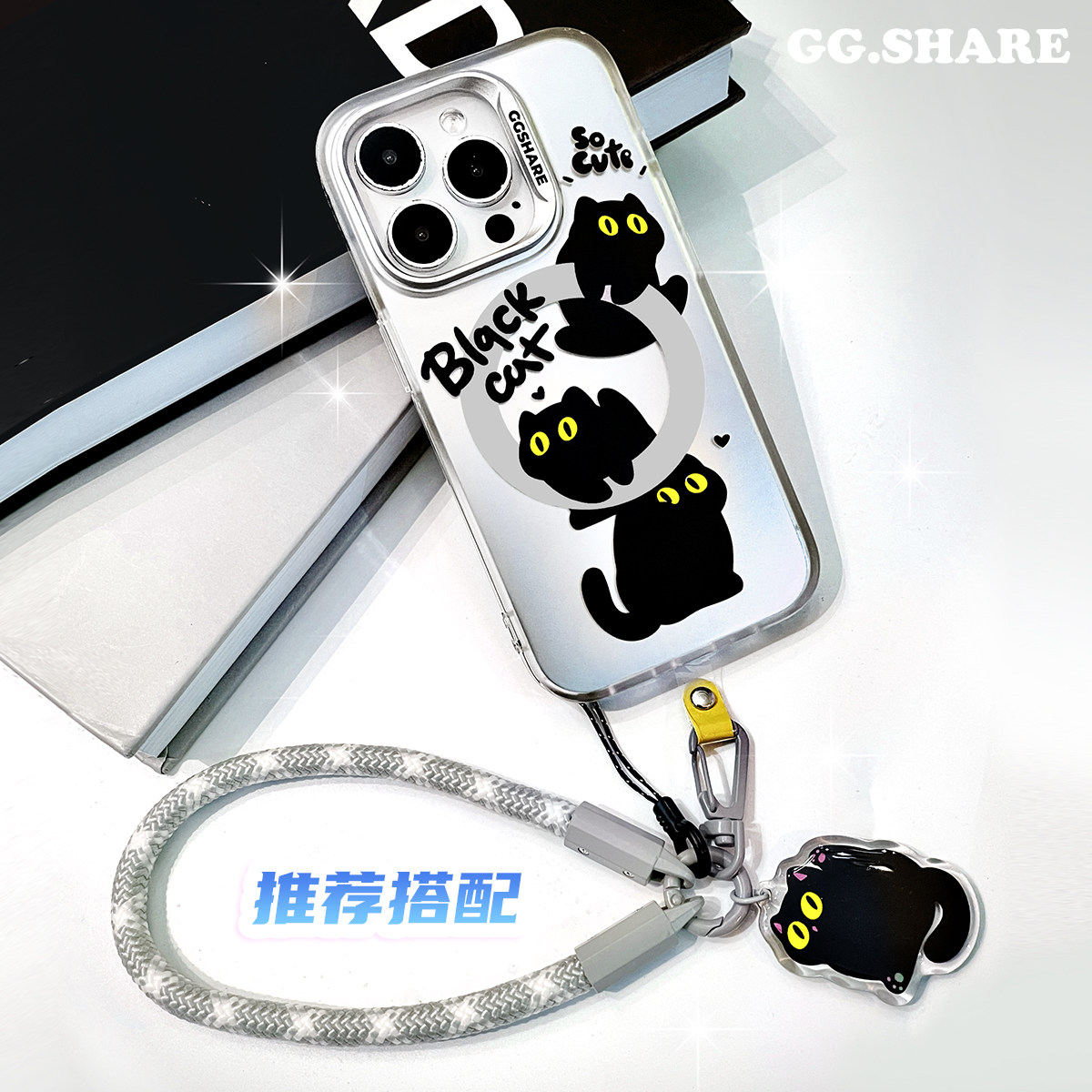 寄居蟹原创调皮猫适用苹果17手机壳带磁吸支架iPhone16promax新款15保护套14可爱13高端电镀银磨砂设计高级感