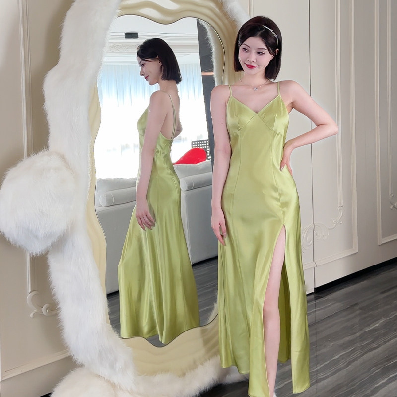 金三塔凉感真丝吊带裙100%桑蚕丝纯欲风睡衣真丝性感睡裙家居服女