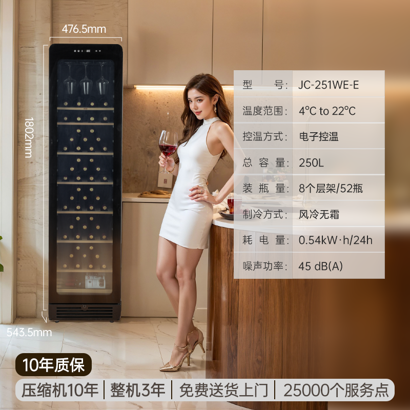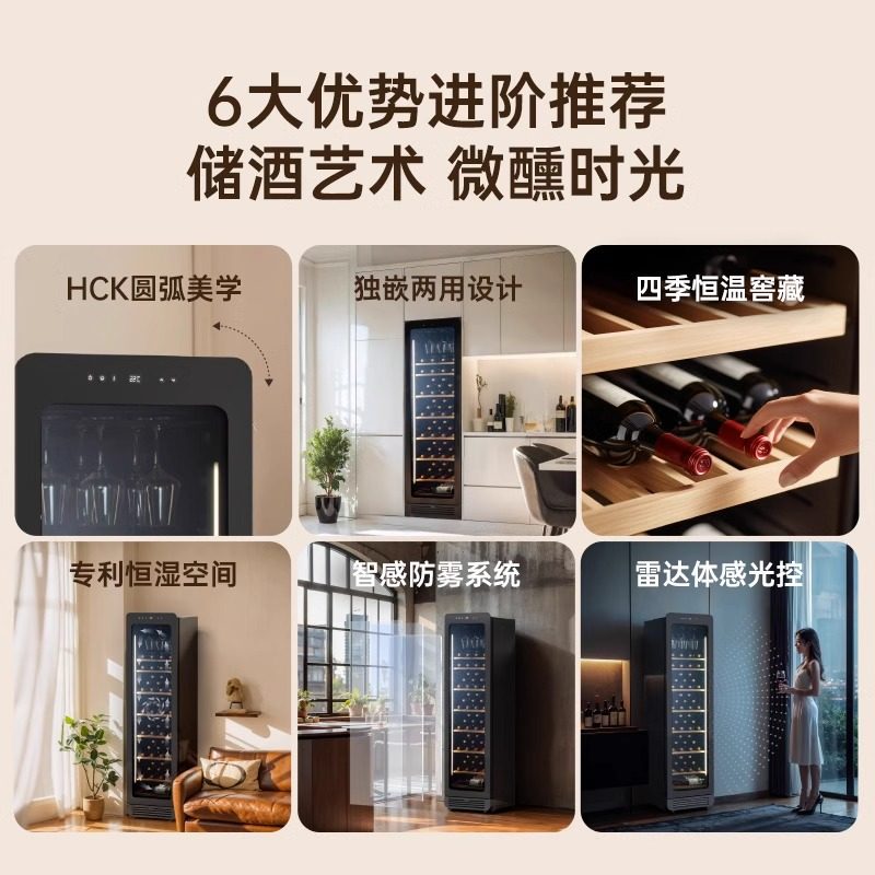 HCK哈士奇红酒柜恒温恒湿52瓶家用250L嵌入式冰箱超薄冰吧冷藏柜