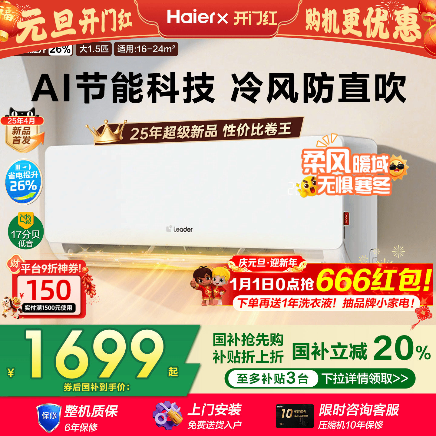 [国补20%]海尔空调1.5匹家用一级能效变频冷暖卧室统帅挂机节能