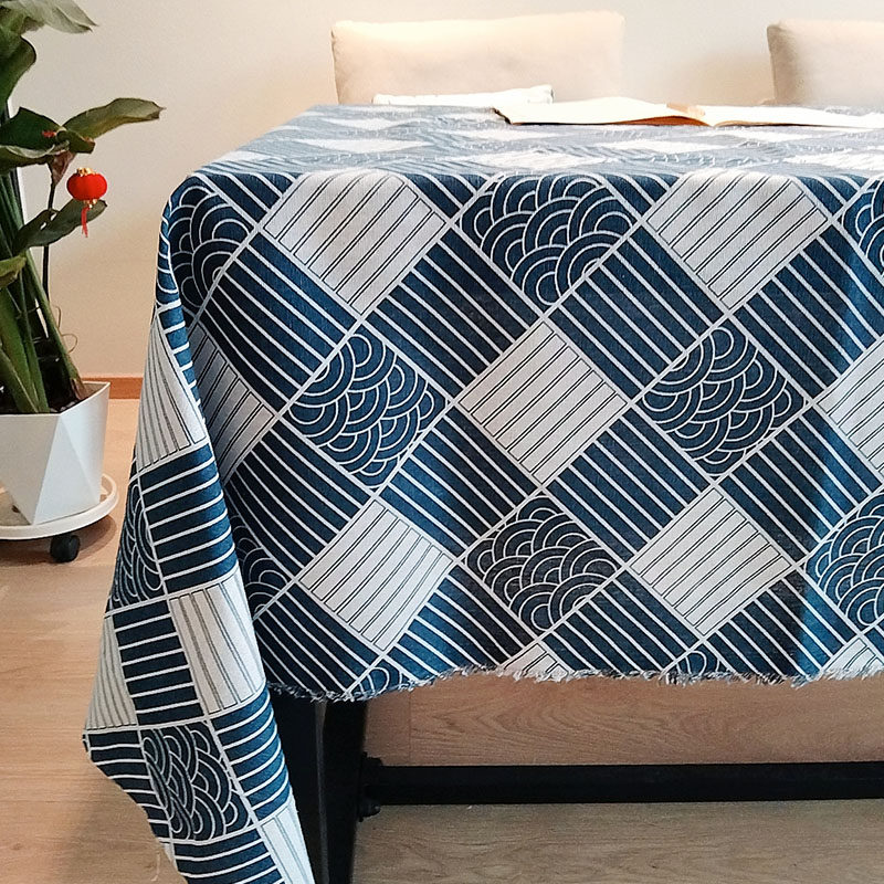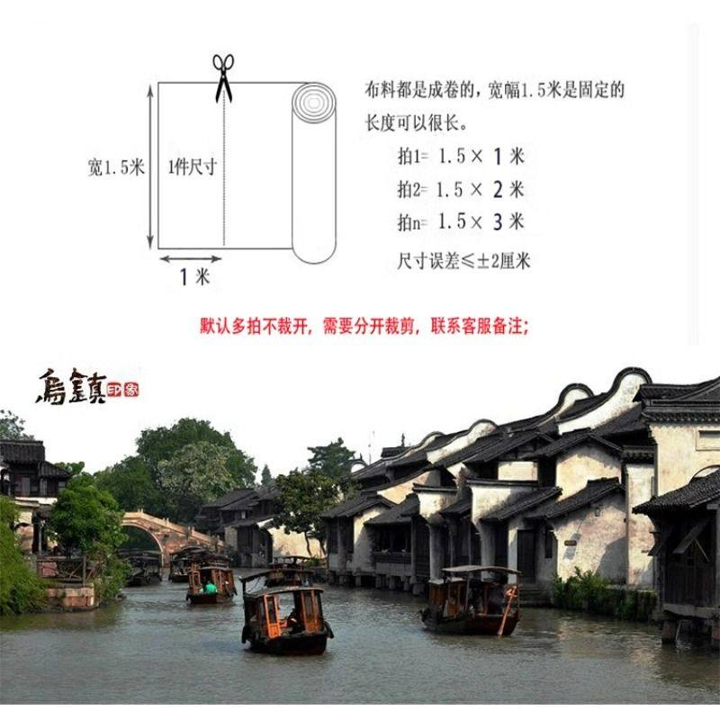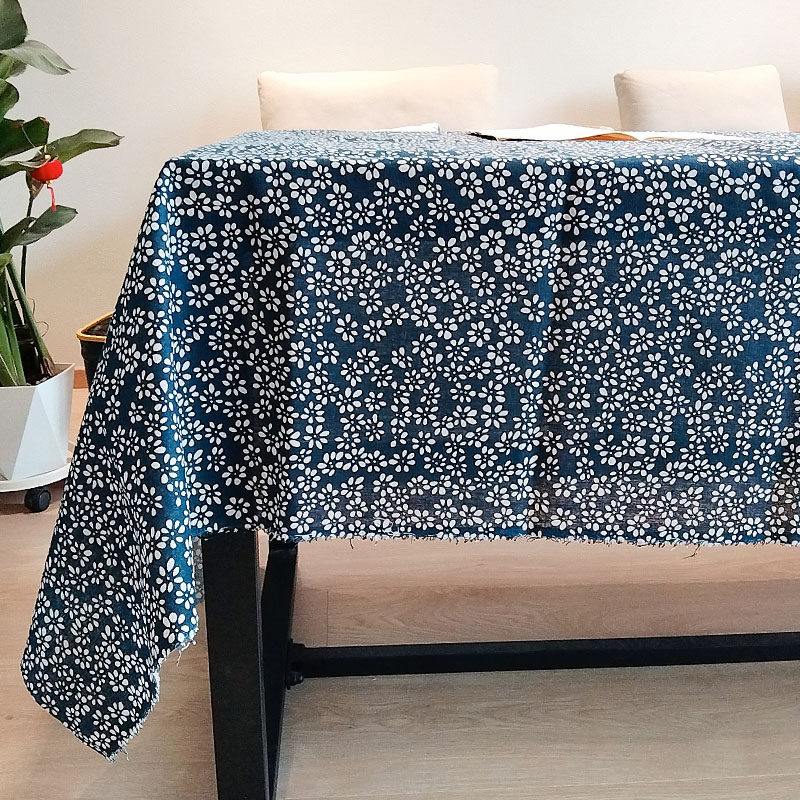 乌镇蓝印花布料涤棉青花中国风面料仿蜡染民族风桌布窗帘装饰布头