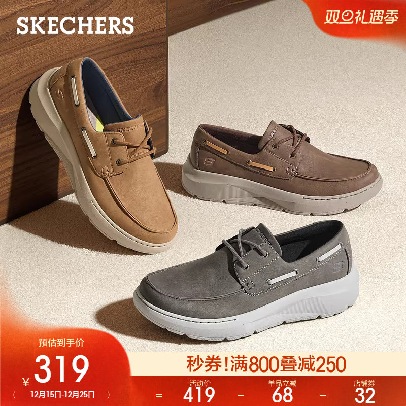 斯凯奇秋冬新款男子舒适休闲皮鞋商务鞋通勤鞋德比鞋软底上班板鞋