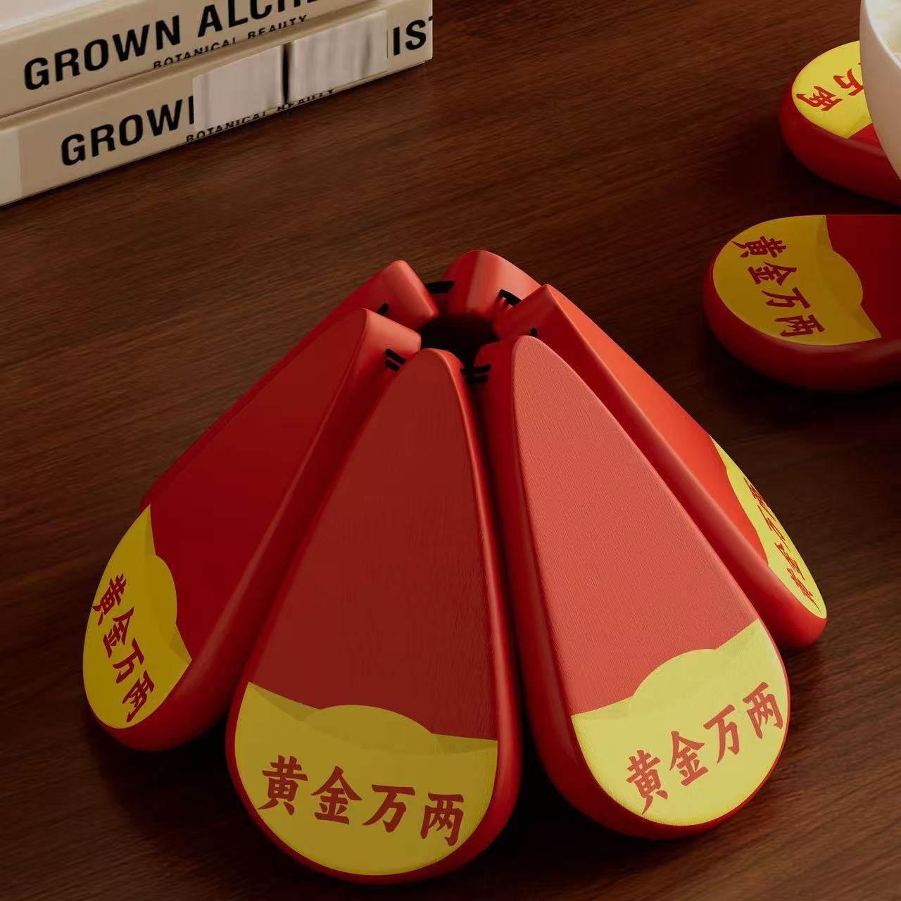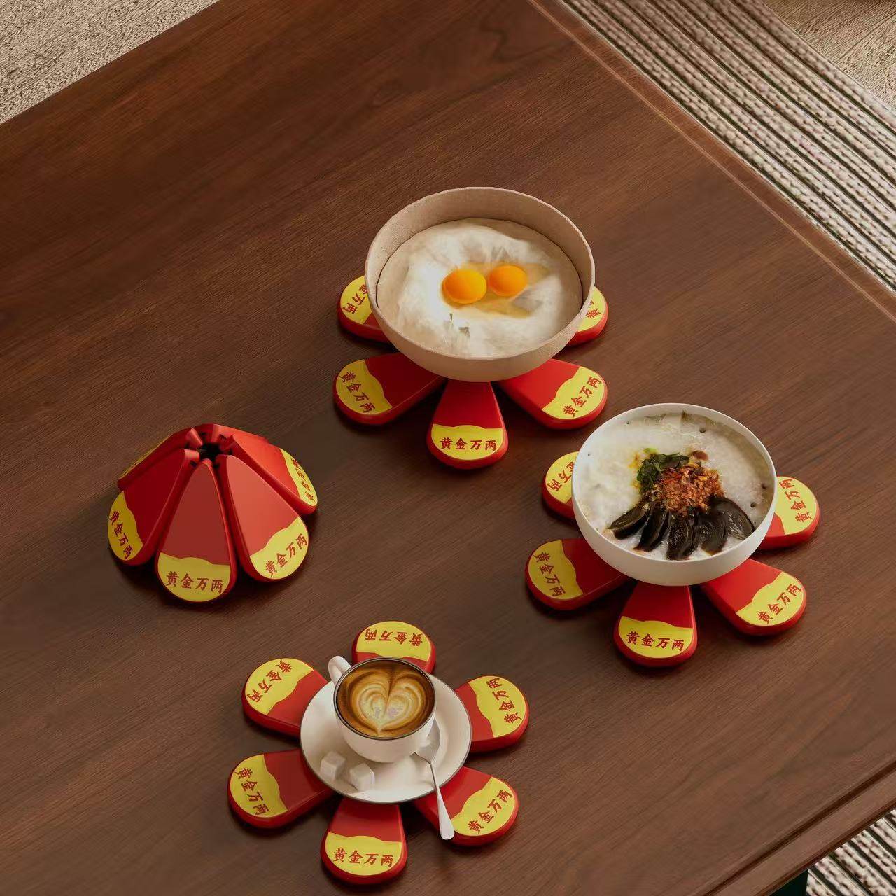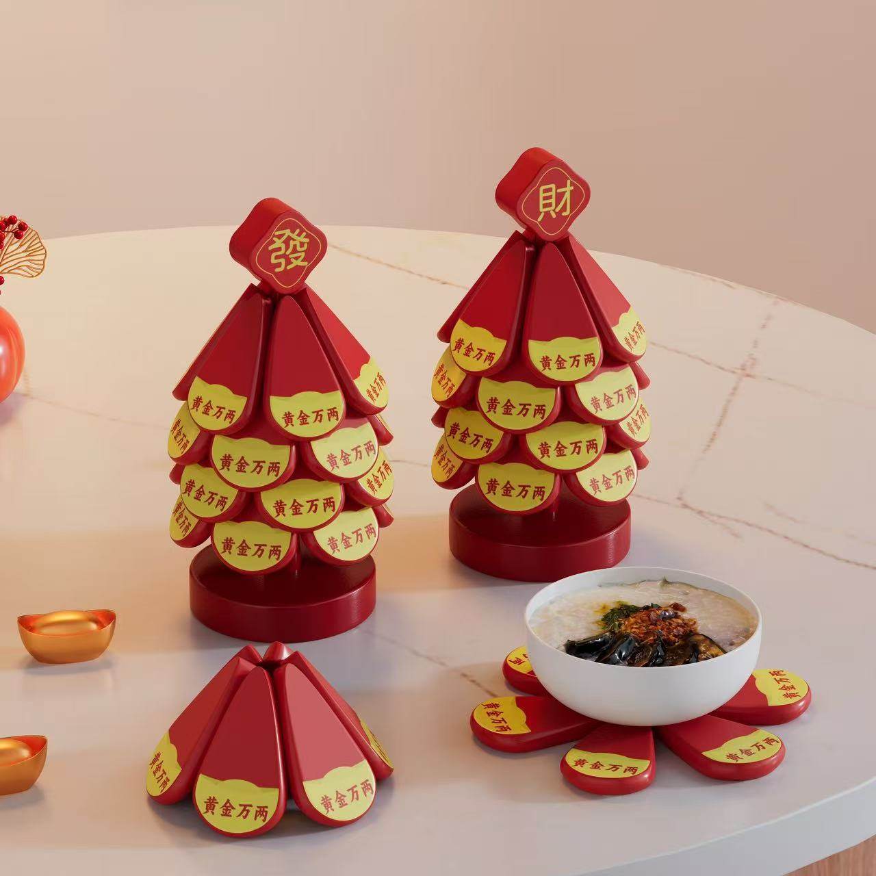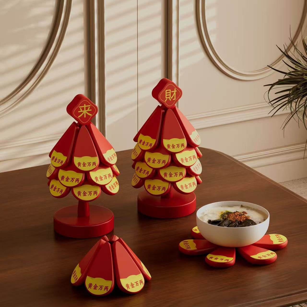 隔热餐垫圣诞树摇钱树新年圣诞礼物摆件实木折叠杯垫碗垫防烫锅垫