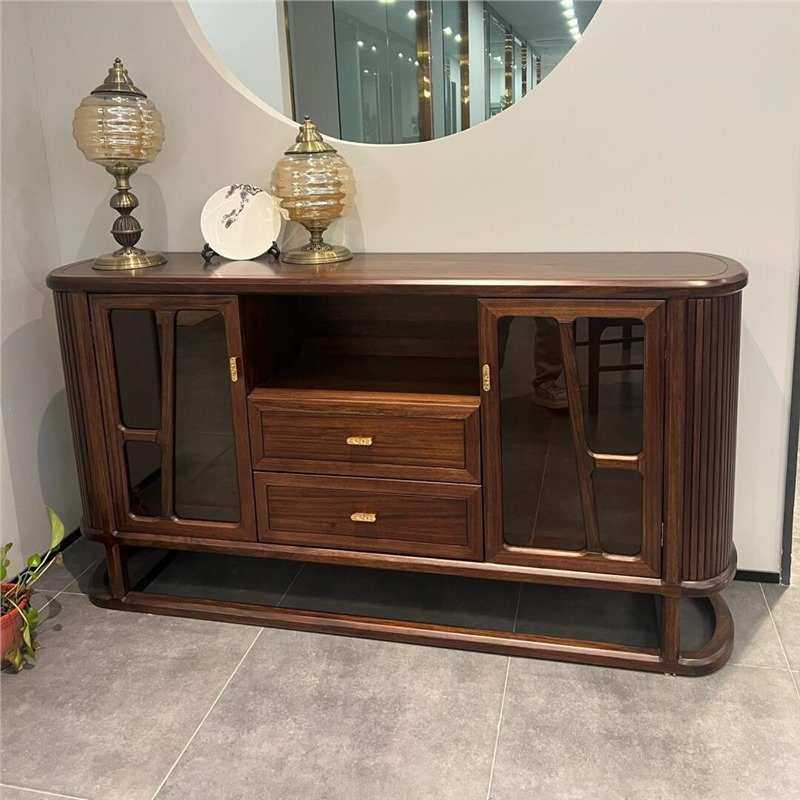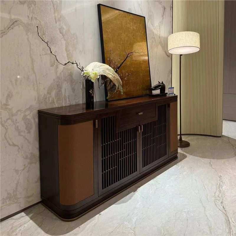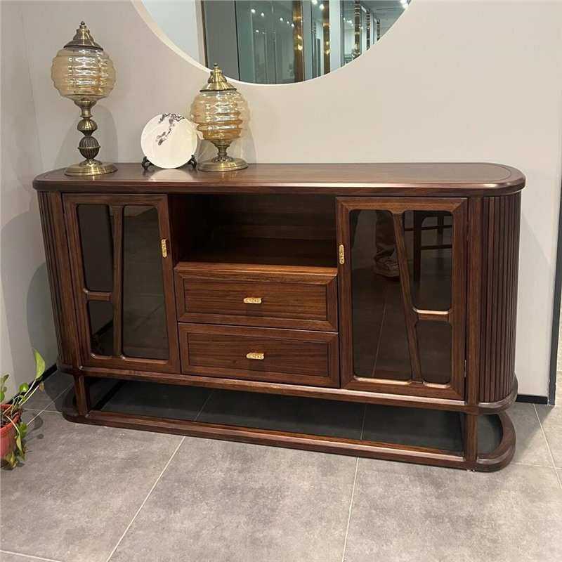 设计师款新中式餐厅家用实木餐边柜别墅大平层现代简约乌金木长桌