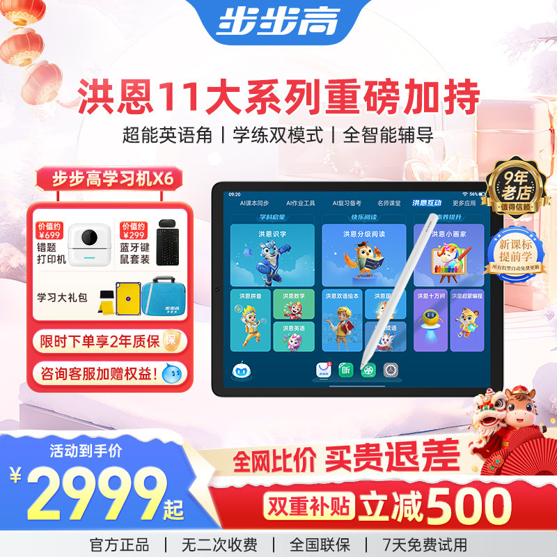 【官方旗舰】步步高学习机X6早教洪恩幼小初高智能ai儿童学生平板步步高至尊版全科免费官方旗舰
