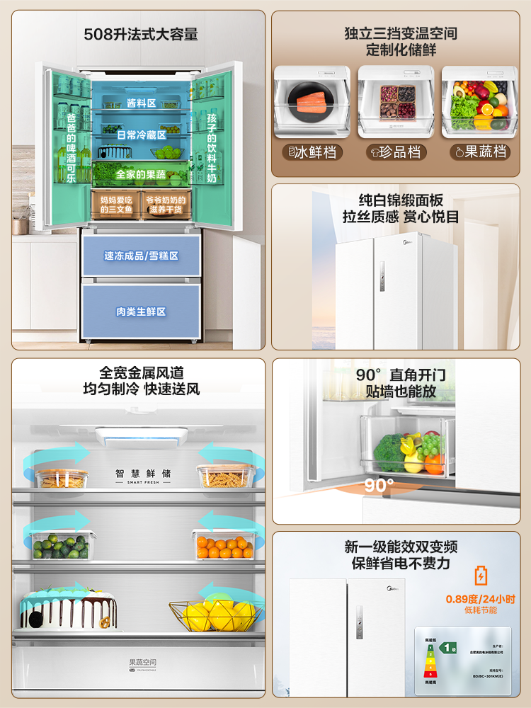Midea/美的 BCD-508WTPZM(E)法式门白色双系统家用双循环无霜冰箱