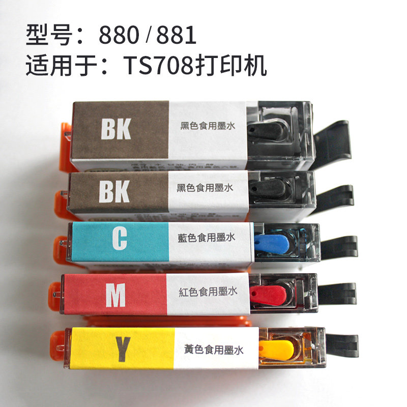 食用墨盒糯米纸打印机佳能TS708数码蛋糕打印机棒棒糖打印机880 881进口可食用墨水连喷墨盒填充墨盒彩色加墨