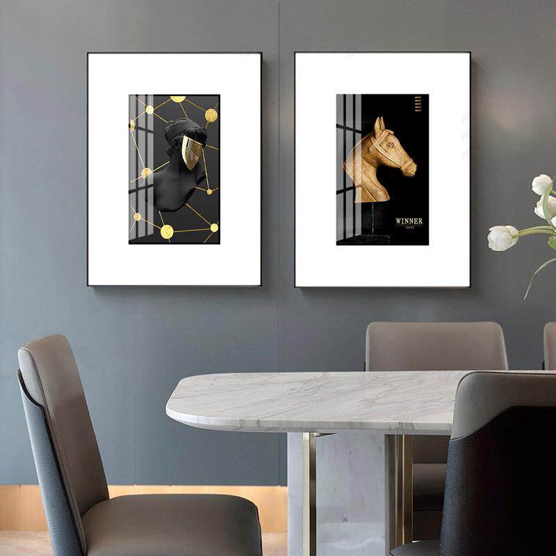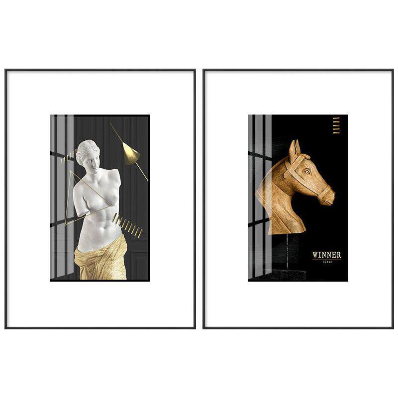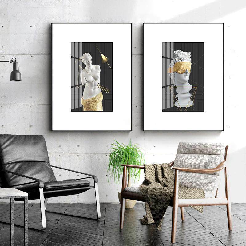 后现代简约装饰画抽象轻奢大卫雕塑客厅挂画意式轻奢展厅铝合金画