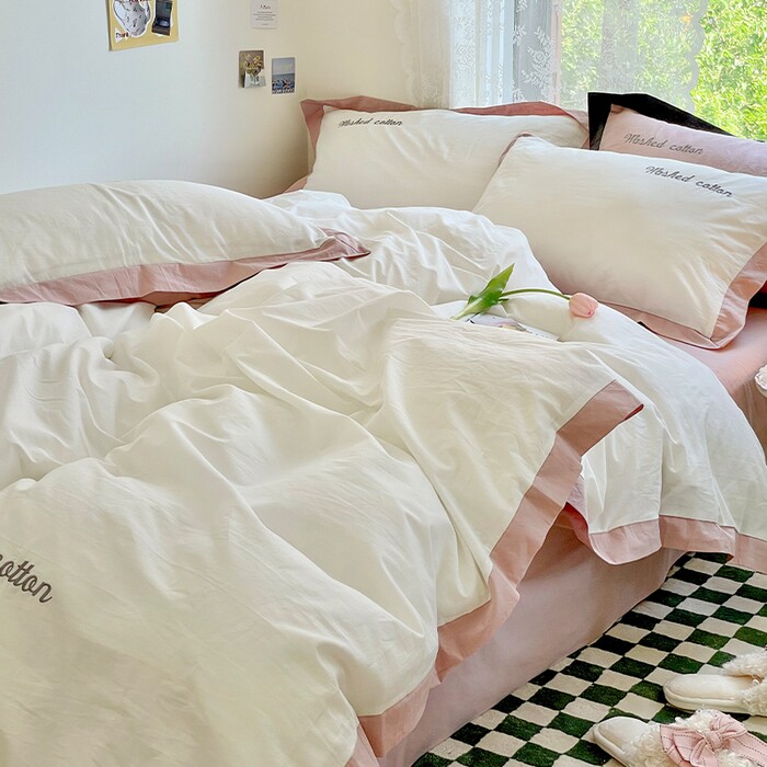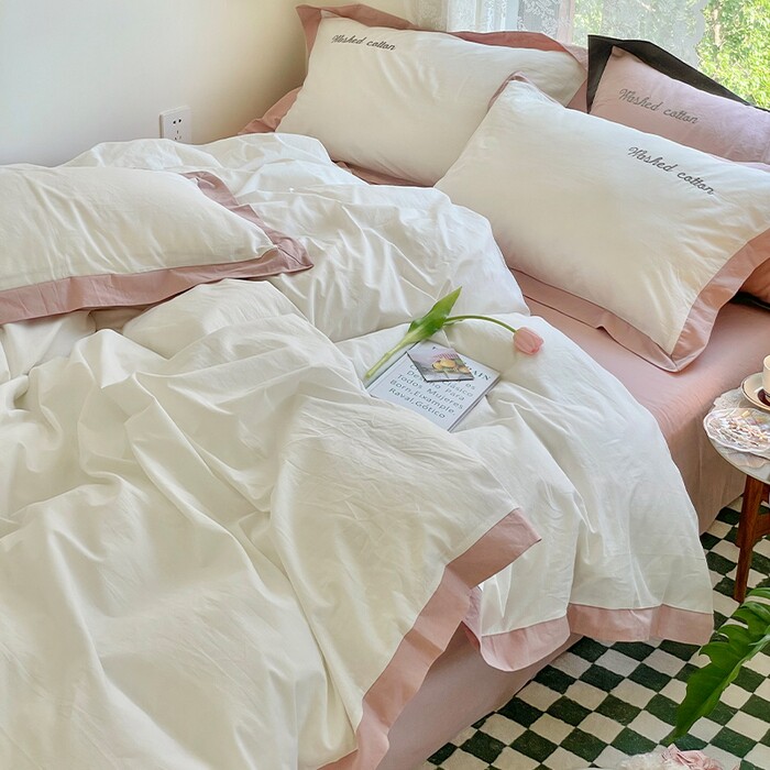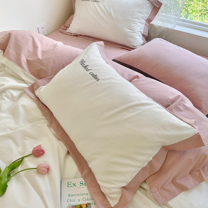 全棉水洗棉宽边绣字四件套ins风纯棉贝壳绣床单柔软亲肤床品套件