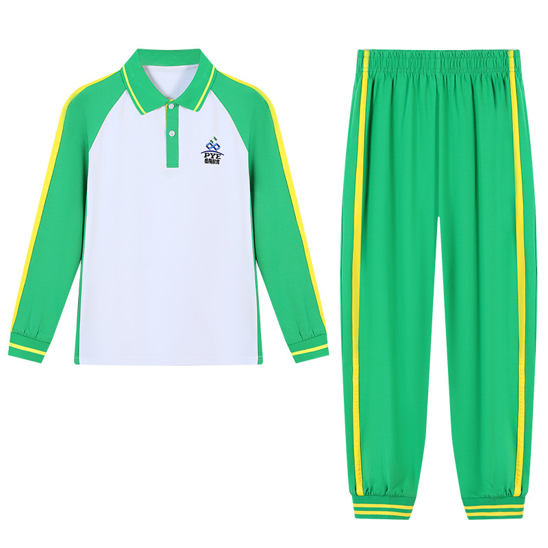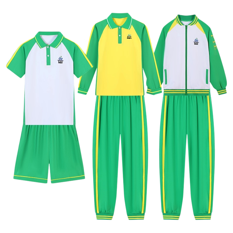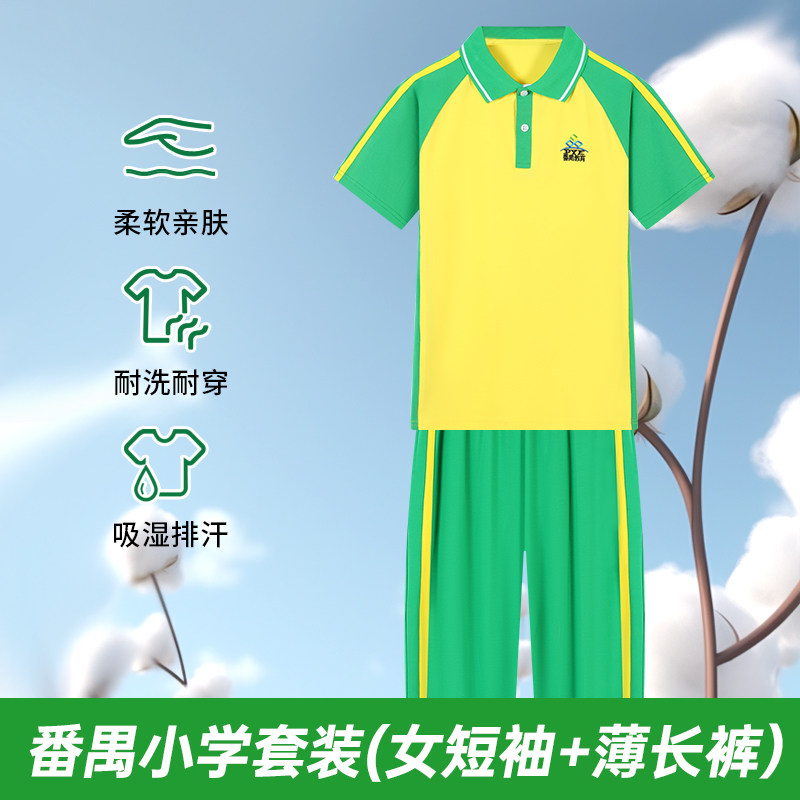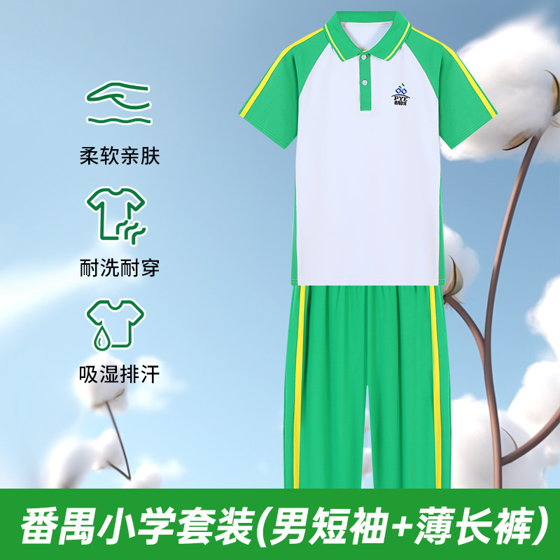广州番禺区小学生校服男女运动套装纯棉短袖绿色短裤长袖长裤外套