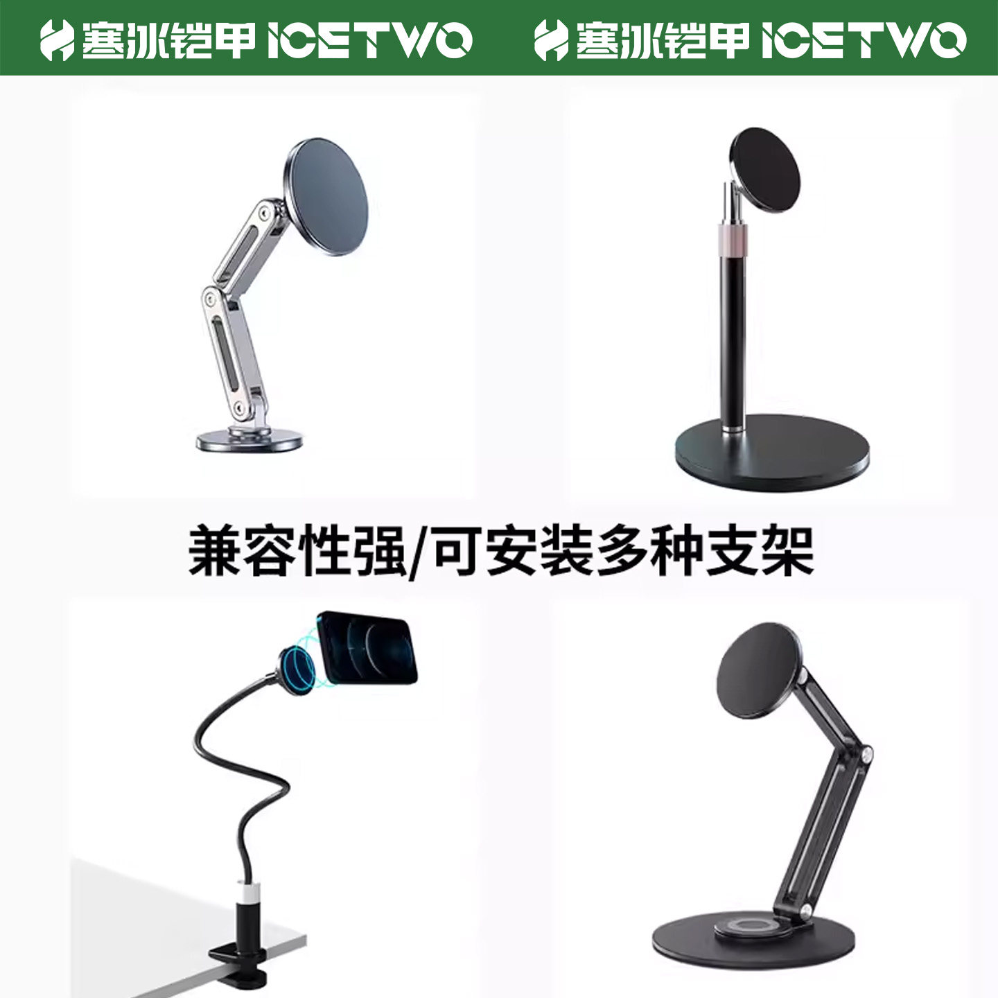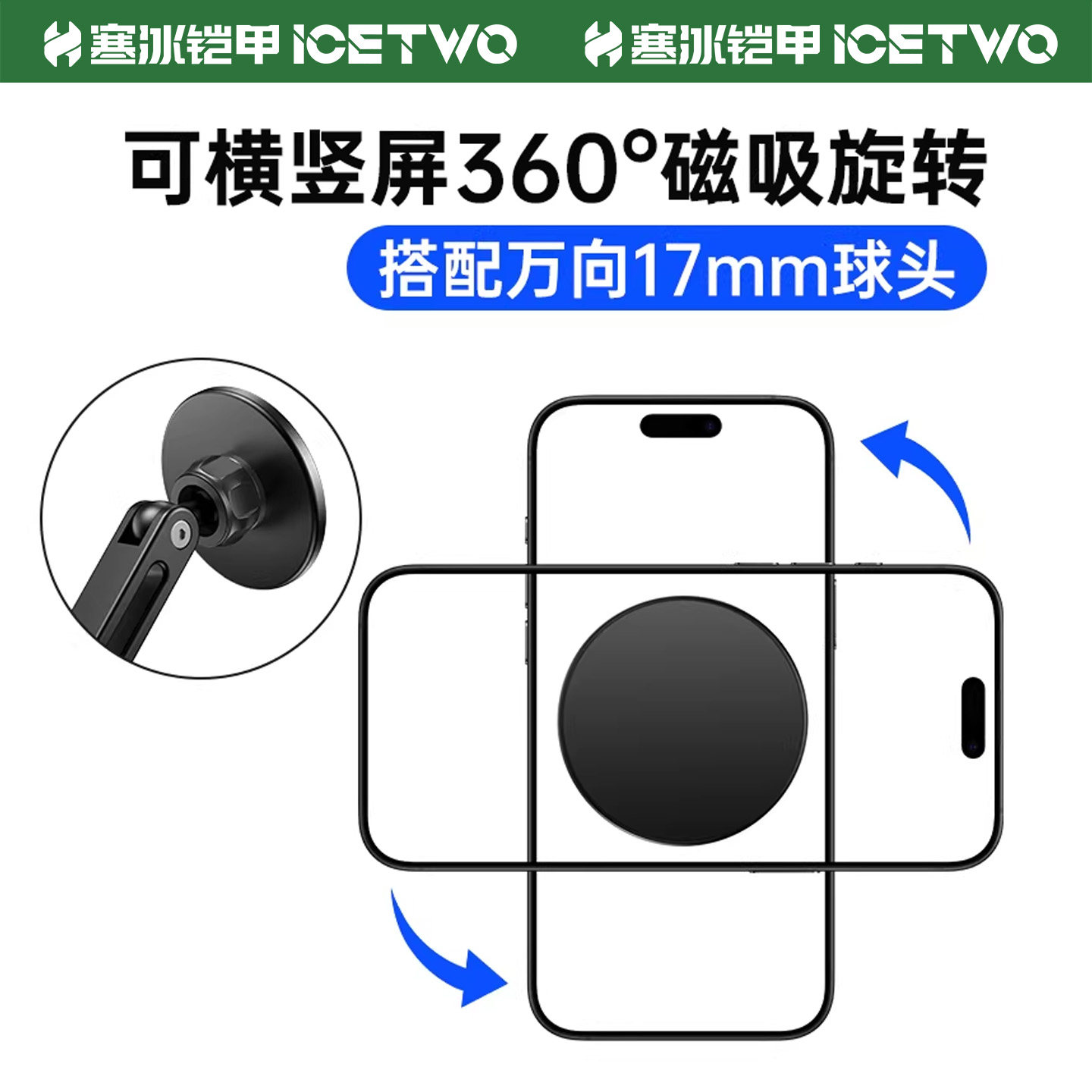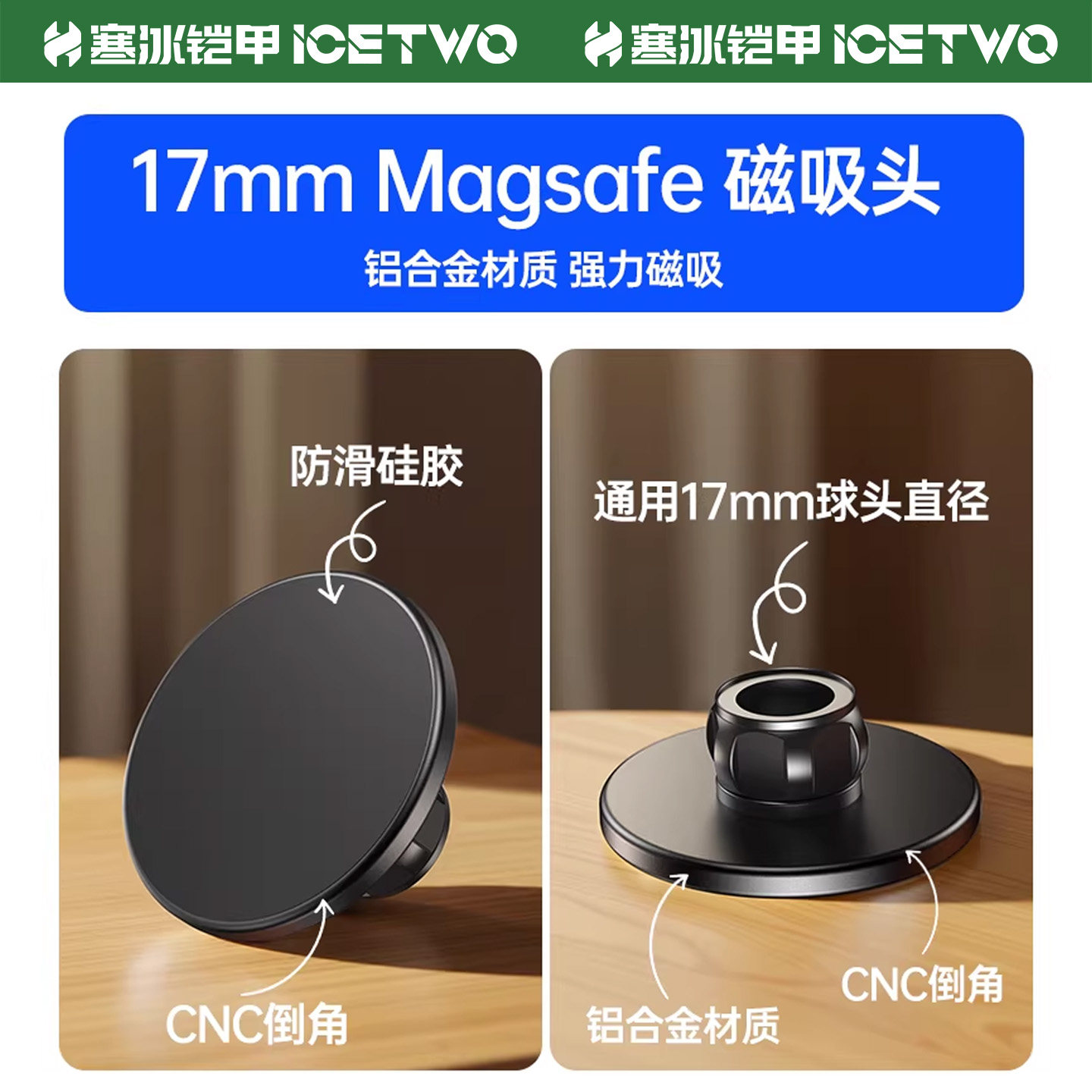 寒冰铠甲 磁吸头magsafe支架17mm球头底座万向头通用铝合金属车载手机配件强磁磁铁粘贴中控仪表台桌面改装