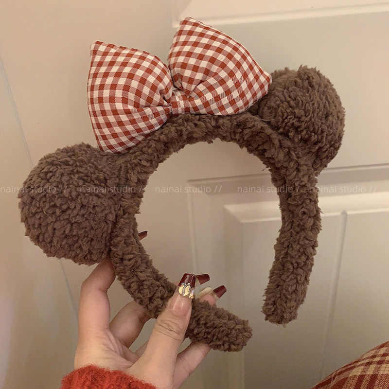 可爱蝴蝶结发箍女2025新款发卡卡通洗脸专用毛绒头箍防滑压发发圈