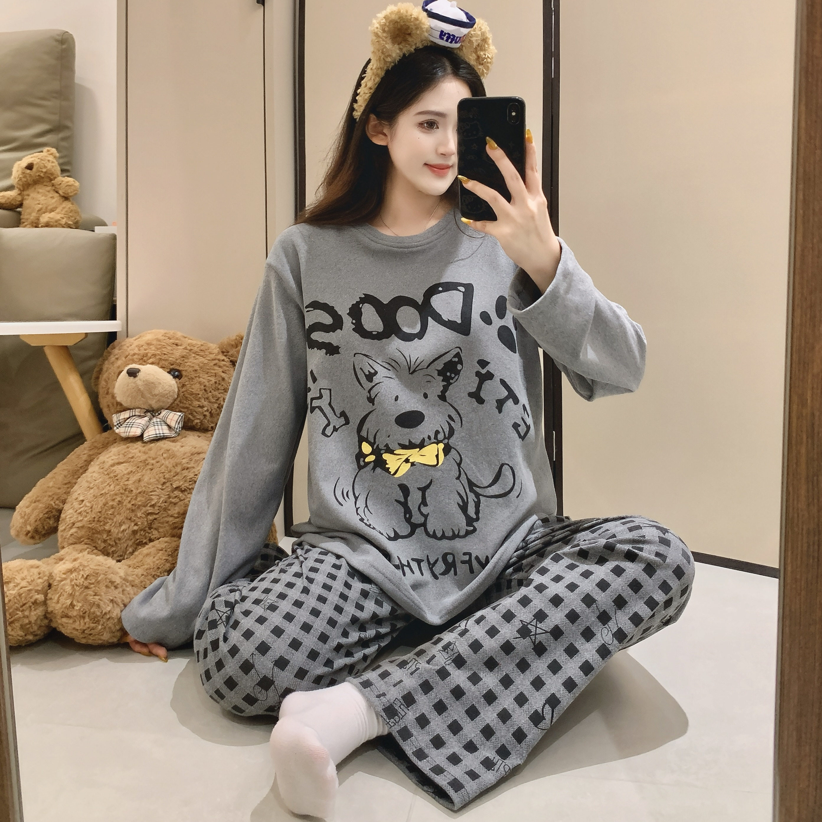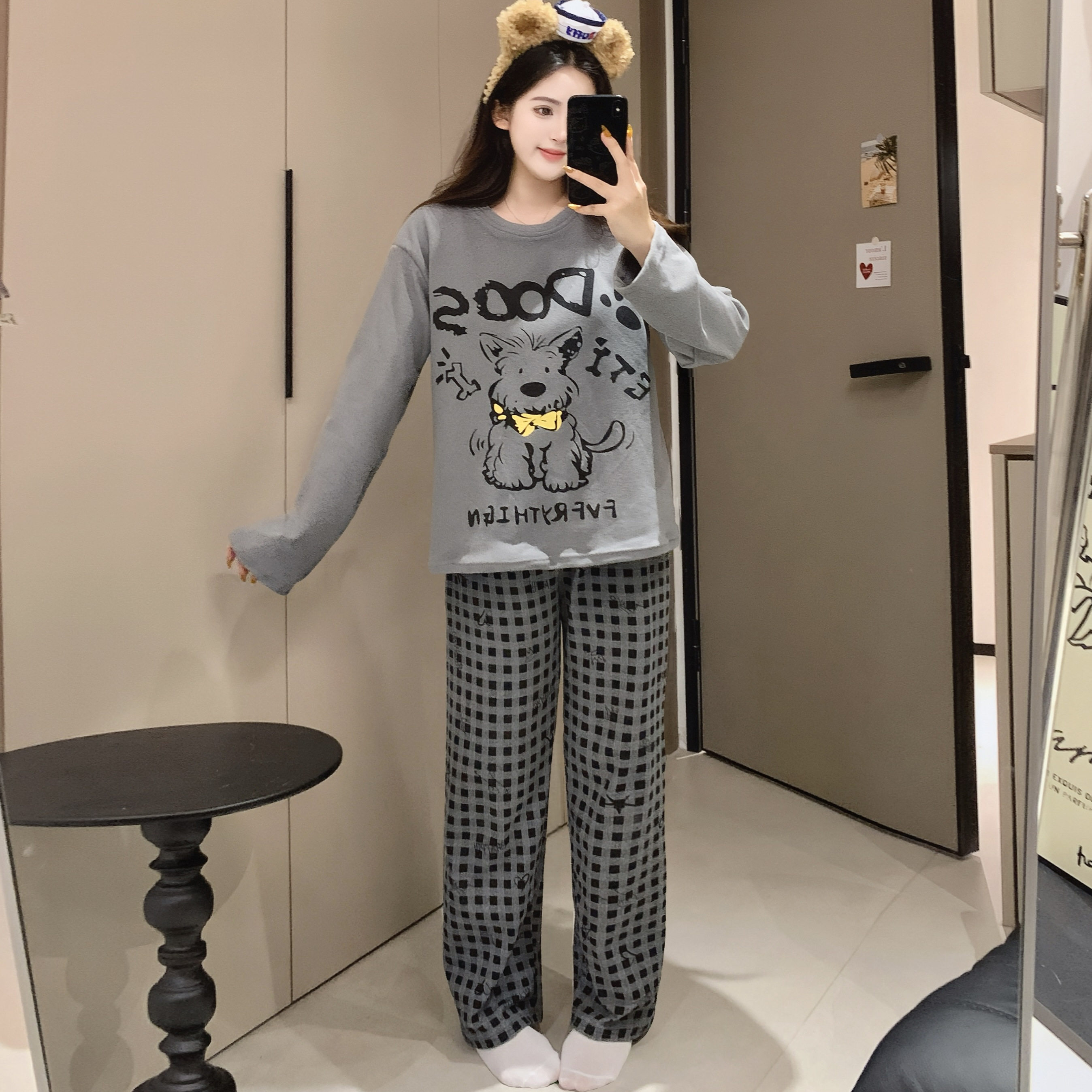 安比斯情侣睡衣舒适纯棉秋季女长袖男女同款休闲家居服套装可出门