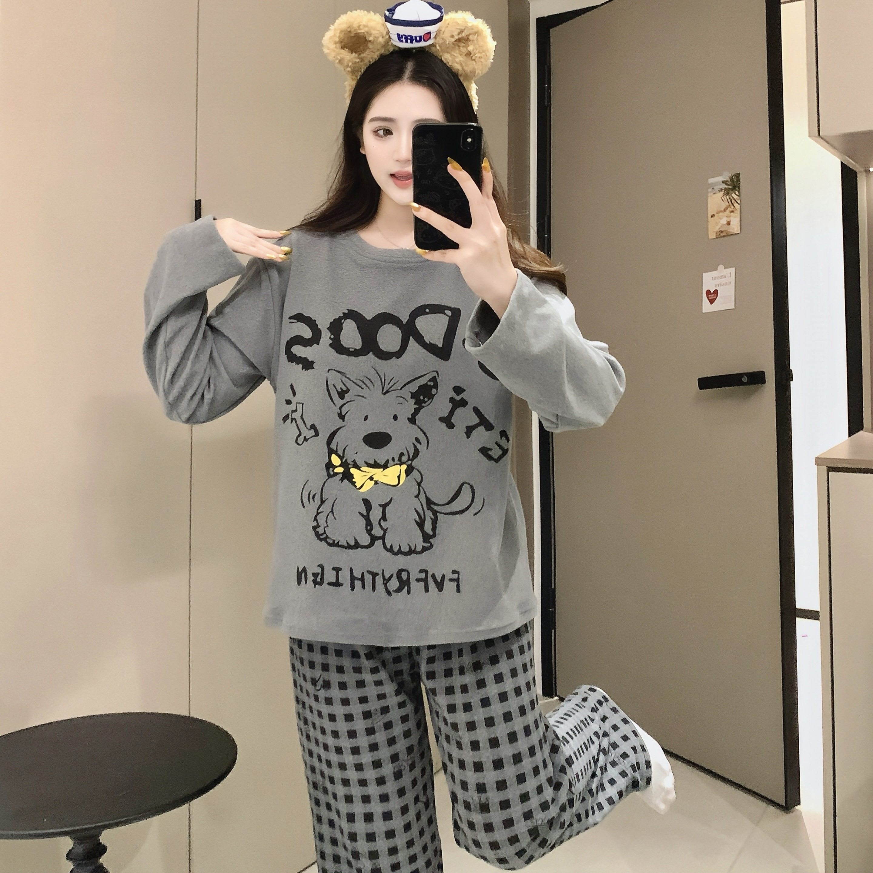 情侣款德绒睡衣女春秋款2025新款长袖大码秋冬睡衣男可外穿家居服