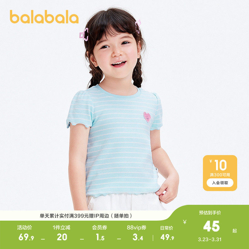 巴拉巴拉宝宝短袖t恤婴儿女童上衣夏装甜美时尚可爱清新纯棉柔软