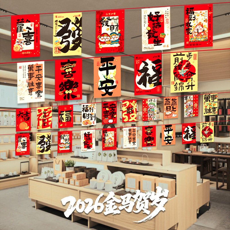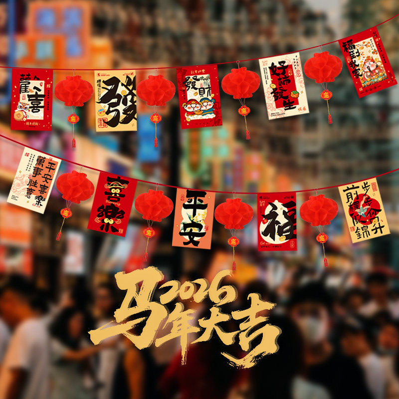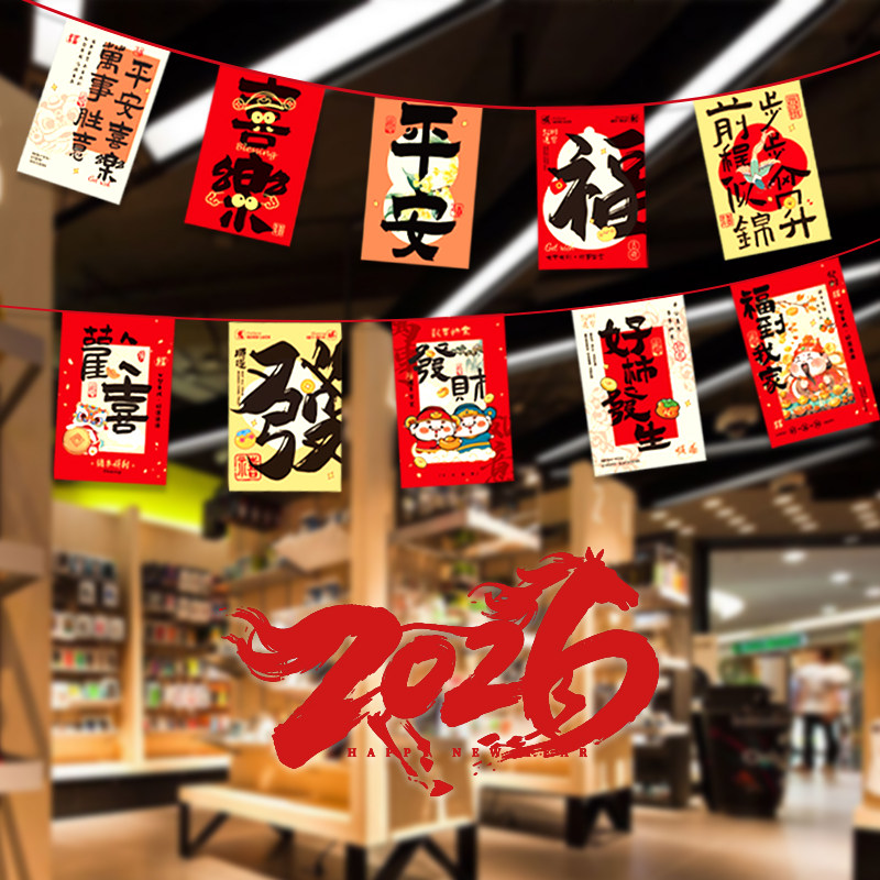 2026新款拉旗春节装饰过年彩旗拉花挂件店铺商场景氛围布置串吊旗