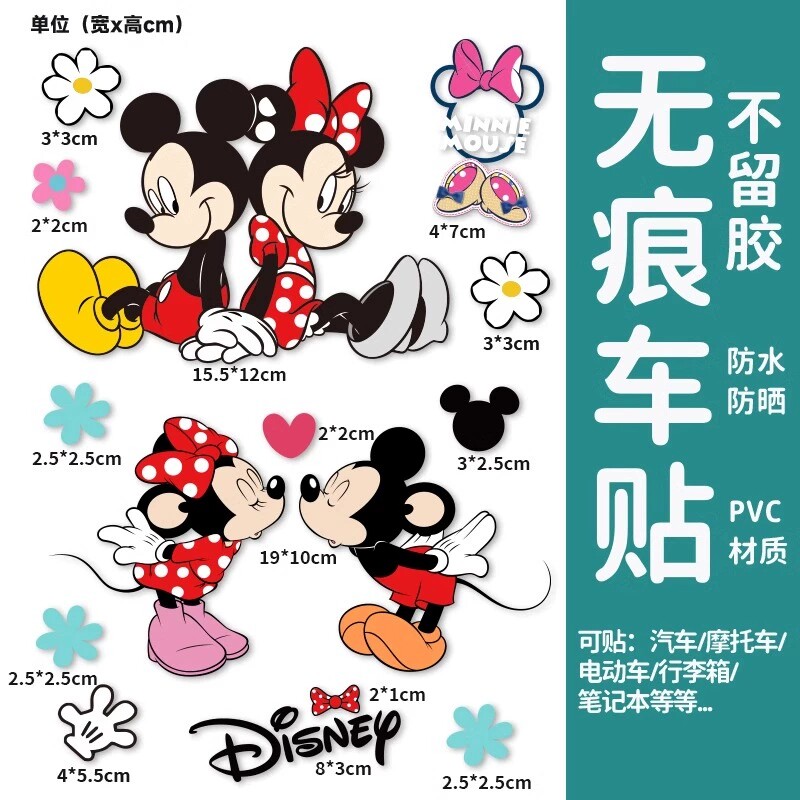 米老鼠车贴米奇米妮卡通可爱车身遮挡划痕装饰贴电瓶车摩托车贴画