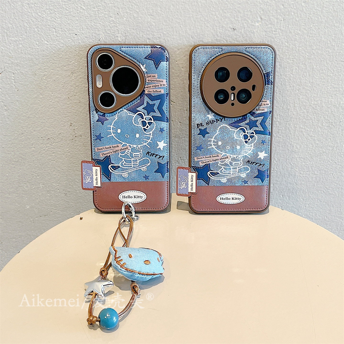 适用华为mate70pro+手机壳牛仔纹卡通星星滑板猫咪Mate60pro猫咪公仔挂绳mt50pro气垫皮纹pura80pro+防摔女款