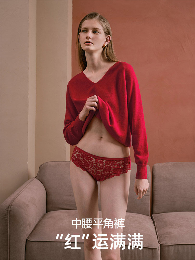 【3条147元】安莉芳Embrycandies糖果裤本命年红三角裤中高腰内裤