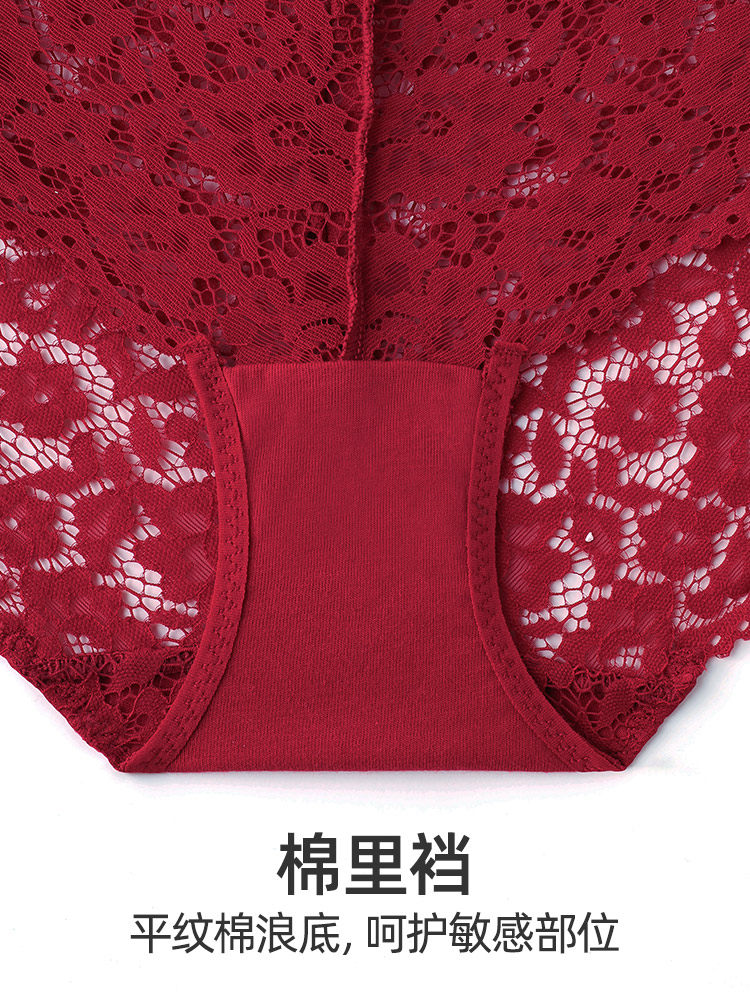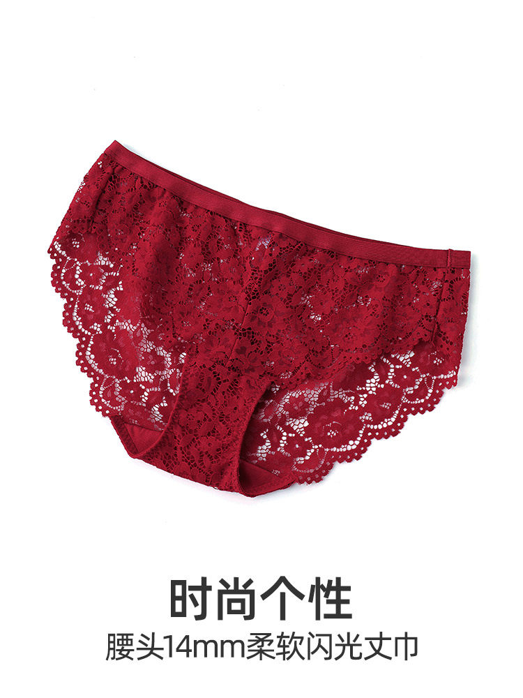 HSIA遐本命年平角裤纯棉裆宽腰头性感全蕾丝结婚新年红色内裤女