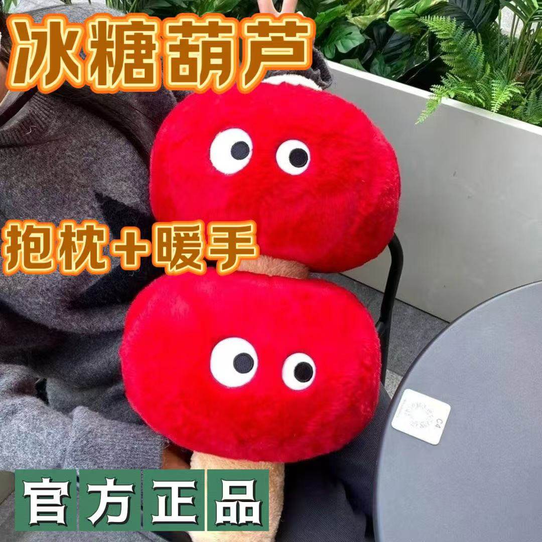 山楂暖手冰糖葫芦抱枕可爱毛绒玩具长条可拆睡觉抱枕女生装饰礼物