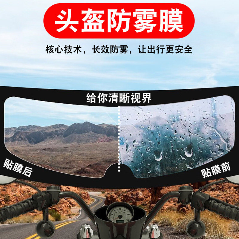 安全摩托车头盔防雾贴镜片防雨膜电动车全盔半盔通用贴膜神器冬季